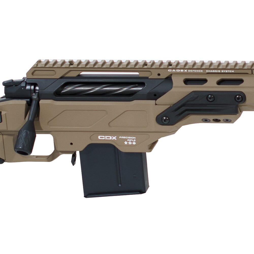 The Cadex CDX-Lite Rifle combines a wide array of mission critical features into one long range sniper rifle. Depending on the caliber, the CDX-Lite features one of Cadex’s the custom actions: the CDX-30 Guardian Action (short action calibers), the CDX-300 Freedom Action (.300 Win. Magnum), or the CDX-33 Patriot (.300 Norma Magnum, .338 Norma Magnum, or .338 Lapua Magnum). All three action types are CNC/wire EDM machined from 416 Stainless Steel and are cerakoted. The bolt utilizes 3 lugs, allows for a 60° bolt throw, and is fluted for weight reduction. Each CDX-Lite rifle is outfitted with a Bartlein straight taper match grade barrel that has been fluted for weight reduction and increased barrel cool down. Additionally the barrel of Cadex’s CDX-Lite is 5R Single Pointed rifled for unparalleled accuracy. The rifle features Cadex’s own DX2 Evo Two Stage trigger than can be easily converted to a one stage trigger based on the shooters preference.
