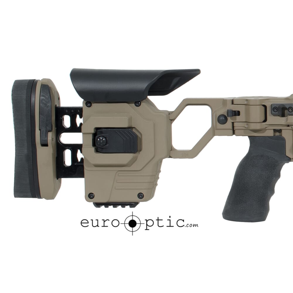 The CDX-Lite Rifle uses Cadex’s Lite Strike Chassis with features designed specifically for snipers. The Lite Strike Chassis is machined from 6061-T6 aluminum billets, anodized, and then finished with a non-reflective paint. The folding buttstock of the Lite Strike Chassis is completely tool free and adjustable for length of pull, cheek height, and recoil pad height. Additionally, the buttstock features a small Picatinny rail section for the mounting of a bipod or bag rider. The oversized trigger guard ensures that the shooter can confidently manipulate the trigger while wearing gloves. The forend of the rifle is outfitted with M-LOK attachment points and pre-installed picatinny rails at the 3, 6, and 9 o’clock positons for the mounting of bipod and other mission critical accessories.