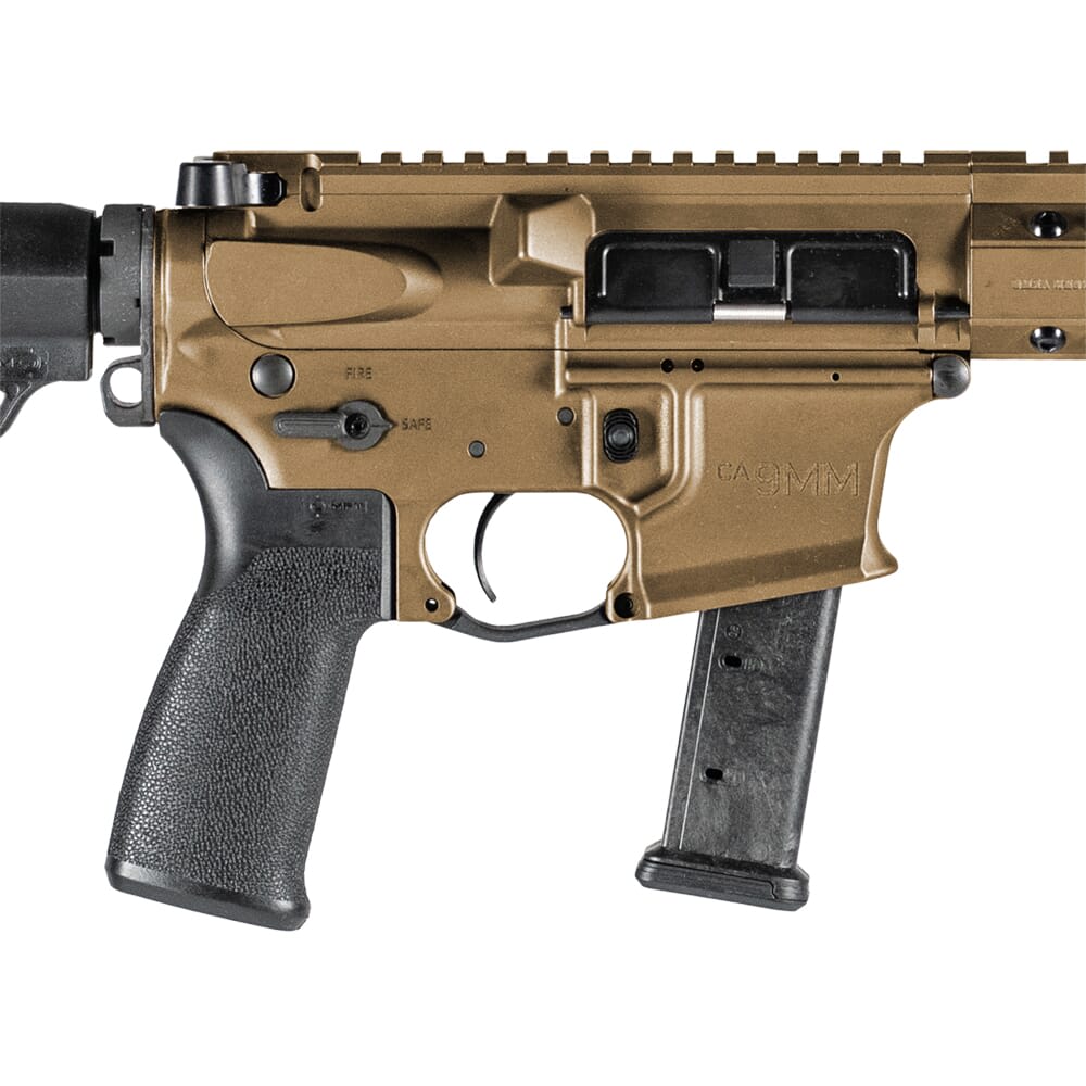 The Christensen Arms CA9mm combines the popularity of the 9mm cartridge into the proven design of the AR15 platform. The CA9mm is available in a 16 inch full length rifle configuration or a 10.5/7.5 inch pistol configuration. The CA9mm shines over other weapons in its class with lightweight design, featuring an upper and lower receiver made from 7075 forged aluminum and a 416R stainless steel barrel wrapped in aerograde carbon fiber. In addition to its lightweight, the CA9mm is remarkably user friendly, sporting familiar AR15 controls and being compatible with Glock magazines.