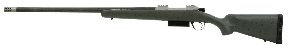This Christensen Arms Classic Carbon .26 Nosler bolt rifle can take on the toughest conditions while maintaining its match-grade accuracy. It has a unique green with black and tan webbing stock, spiral fluted Nitride coated bolt, CA stock with recoil pad, drop-box magazine, 1 MOA accuracy guarantee, and a timney trigger.