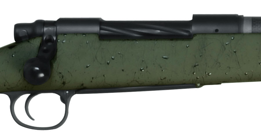 This custom built Christensen Arms Carbon One .300 Win rifle includes a stainless steel action, 26" barrel, Timney trigger, titanium muzzle brake, and a classic green stock with black webbing.