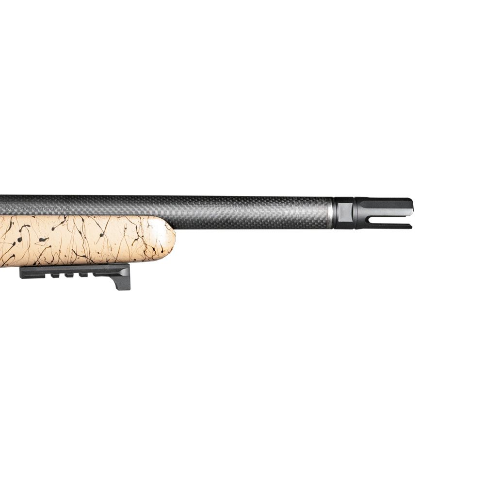 New for 2022, the Ridgeline FFT represents the latest innovation Christensen Arm’s carbon fiber structural manufacturing. It features a stock with Flash Forged Technology (FFT), a proprietary and advanced manufacturing technique that does away with the status quo of “overbuilding” a product in order to meet safety standards. Instead, Flash Forged Technology creates an extremely lightweight structure that exceeds strength and safety margins without compromising performance. The FFT stock utilizes an aerospace monocoque shell to eliminate the unnecessary internal weight found on traditional composite stocks, resulting in a stock that’s a full pound lighter with a sturdy and more consistent shooting foundation. This ultra-lightweight stock combined with Christensen Arm’s signature carbon fiber wrapped barrel makes the Ridgeline FFT an outstanding choice for hunts that involve hiking long distances such as backwoods hunting. The FFT manufacturing process is also 100% zero-waste: all trimmed composites and defective parts are broken down and put back into the production process, which greatly helps Christensen Arm’s goal of wildlife conservation. Other features of the Ridgeline FFT include a sub-MOA accuracy guarantee, due largely in part to its TriggerTech trigger, free-floating barrel, and side-baffle muzzle brake. In addition, the Ridgeline FFT is available in a wide array of chamberings, from the nimble flat shooting 22-250 Remington to the heavy hitting 450 Bushmaster.