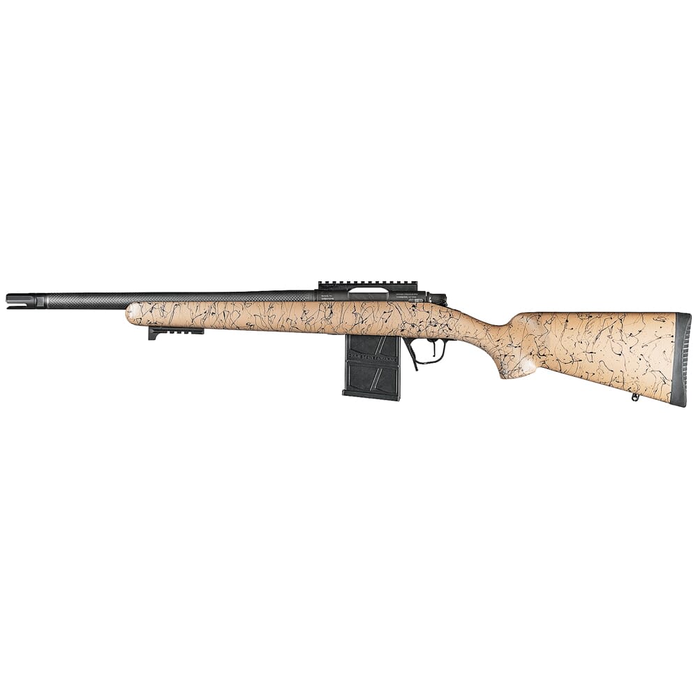 The Ridgeline Scout takes all the best features of the Ridgeline and places them into a more compact rifle. This versatile carbine is perfect for situations where longer barrels can get in the way such as hunting from a blind or tree stand. Its 16-inch, carbon fiber wrapped barrel is tipped with a 3-prong flash hider similar to those found on Christensen Arms’ AR platforms. This muzzle device greatly mitigates muzzle flash, and can be removed for the installation of a suppressor. The Ridgeline Scout comes standard with the same forward-mounted picatinny rail found on the Modern Precision Pistol for bipod attachment. The front portion of this rail hangs down and can be used as a barricade stop. The trigger on the Ridgeline Scout is the same TriggerTech flat trigger found on the MPR, and offers an excellent feel, shooter comfort, and is fully adjustable. This carbine also comes with a Christensen Arms one-piece picatinny 0-MOA optics rail, and an upgraded bolt with a larger knob for easy manipulations even when wearing gloves. In addition, the Ridgeline Scout features the same weatherproof composite stock found on the Mesa and other Ridgeline models.