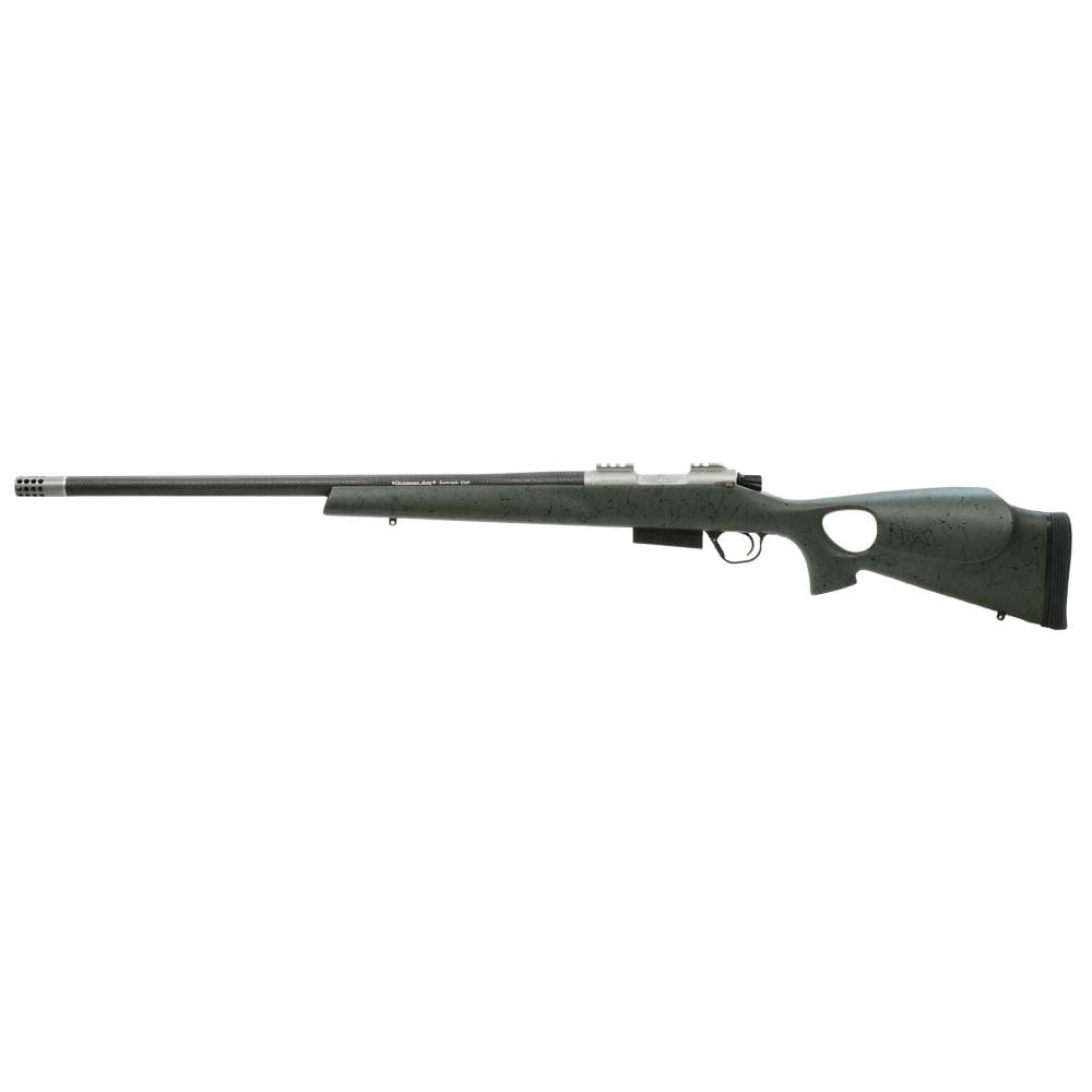 The ultimate hunting rifle. This Christensen Arms Summit .270 WSM is a workhorse which features a 24" barrel, timney trigger, and green carbon fiber thumbhole stock with black webbing.