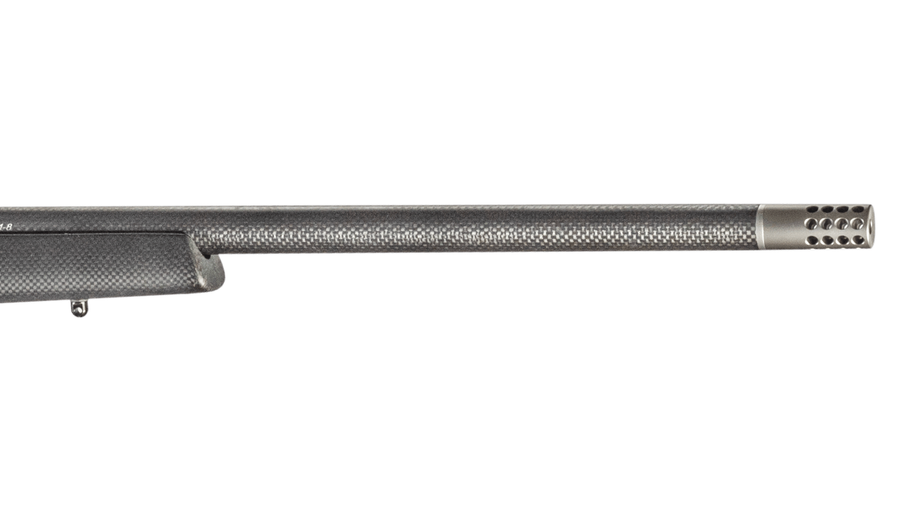 In addition to the precision titanium action and Aerograde Carbon Fiber Stock, the Summit Ti is outfitted with a carbon fiber barrel. The barrel making process starts with a 416R stainless steel bar, which is precision drilled, button rifled, and turned down to an ultra-slim profile. The barrel is then wrapped in layers of a proprietary carbon fiber material that was originally used in the aircraft industry, before being threaded, and given a titanium radial muzzle brake to mitigate recoil. The result is a barrel with a light target contour and a match chamber, which exceeds the standards associated with traditional steel barrels but without the weight. The combination of a titanium action, Aerograde Carbon Fiber Stock, and carbon fiber wrapped barrel gives the Summit Ti a remarkable lightweight between 5.5 to 6 lbs, making the Summit Ti an ideal choice for backcountry hunters, or any hunting application that involves long hikes.