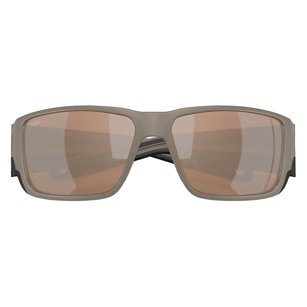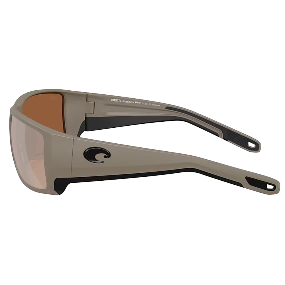 The Costa Blackfin PRO Sunglasses in Matte Sand with Copper Silver Mirror 580G lenses are designed for anglers and outdoor enthusiasts who need maximum clarity, protection, and comfort. Featuring Costa’s 580G polarized glass lenses, they reduce glare, enhance contrast, and provide true color recognition. The injected Grilamid® frame is lightweight yet durable, with adjustable ventilated nose pads, Hydrolite® sticky temples, and side shields for additional light control. ANSI Z87.1 certification ensures high-impact protection, while the wide frame fit and wrap-around design provide excellent coverage for larger faces. These sunglasses combine rugged performance, premium optics, and stylish design for full-day wear on and off the water.