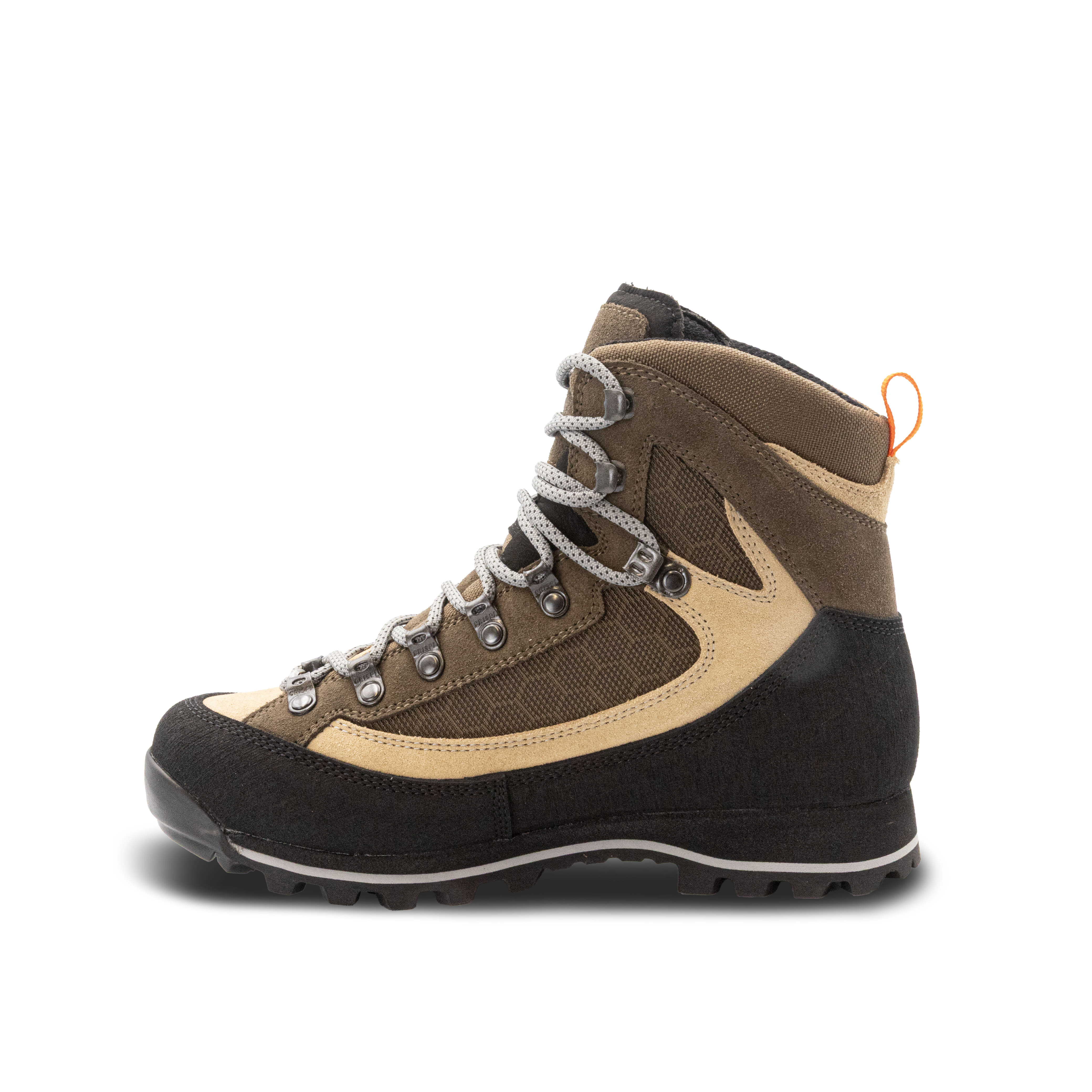 The upper combines water-repellent suede leather with highly abrasion-resistant PUtek® fabric, creating a boot that is tough, flexible, and exceptionally breathable. A full GORE-TEX® surround lining ensures complete waterproof protection while allowing moisture to escape during extended use in wet conditions. Underfoot, a dual-density EVA midsole provides lightweight shock absorption, while the CRISPI® x Vibram® Megagrip outsole delivers confident traction and stability on slick rock, steep slopes, and uneven forest floors.