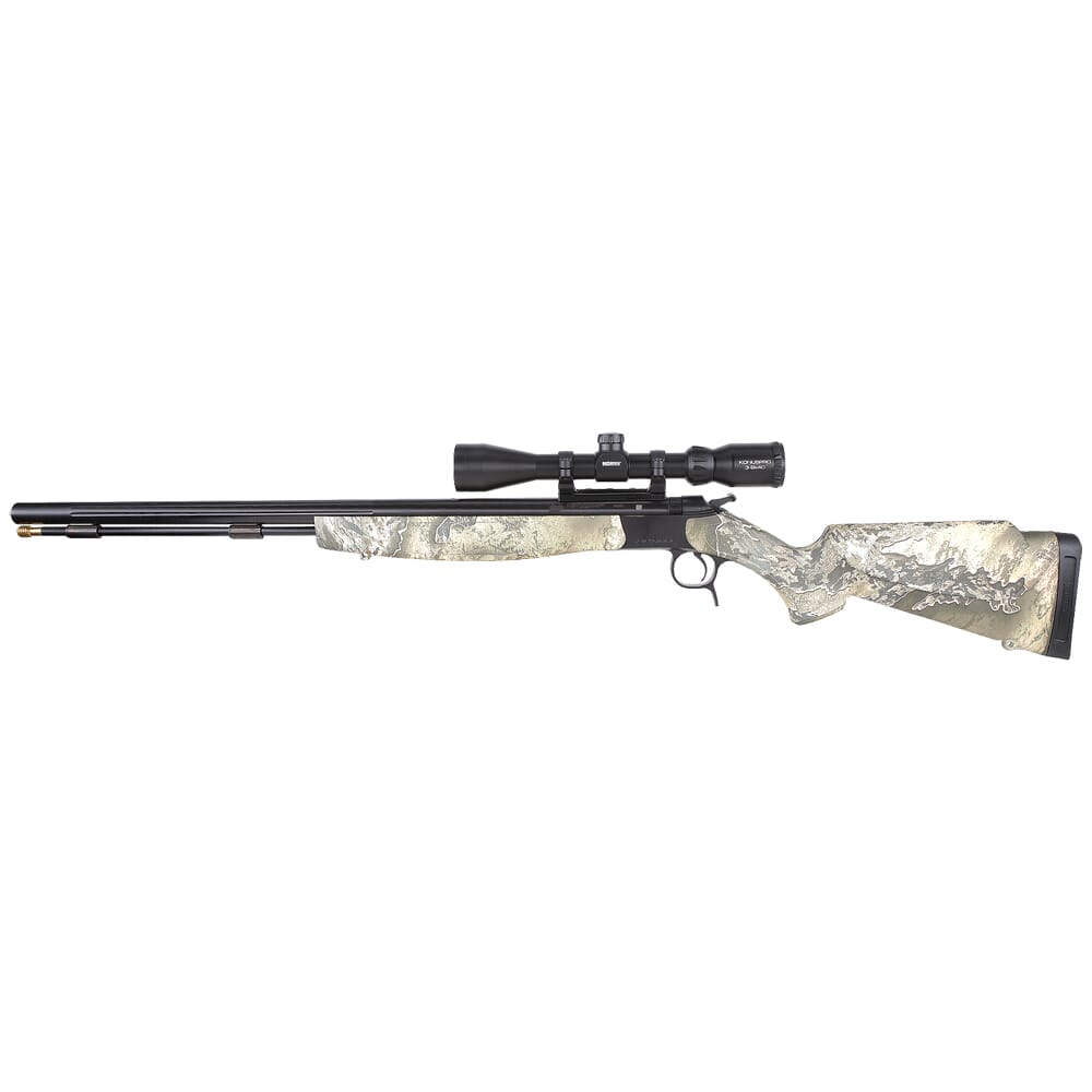Modeled after CVA's renowned Accura V2, the Optima V2 Muzzleloader delivers a plethora of quality features at an unbeatable price. Just like the Accura V2, the Optima V2 uses the same trigger guard actuated breeching lever, internal parts, and trigger. The stock is 100% ambidextrous, and is available in an ergonomic thumbhole version or a traditional rifle stock version. Both variations feature a CrushZone pad to reduce felt recoil, and are outfitted with a generous cheekpiece to promote proper alignment between the shooter's eye and a mounted optic/iron sights. The Optima V2 comes standard with CVA's exclusive Quick Release Breech Plug – a tool free breech plug that can be easily removed with just a twist of the fingers even after extensive shooting. In addition, this Optima V2 is outfitted with a Kronus 3-9x40 BDC scope.