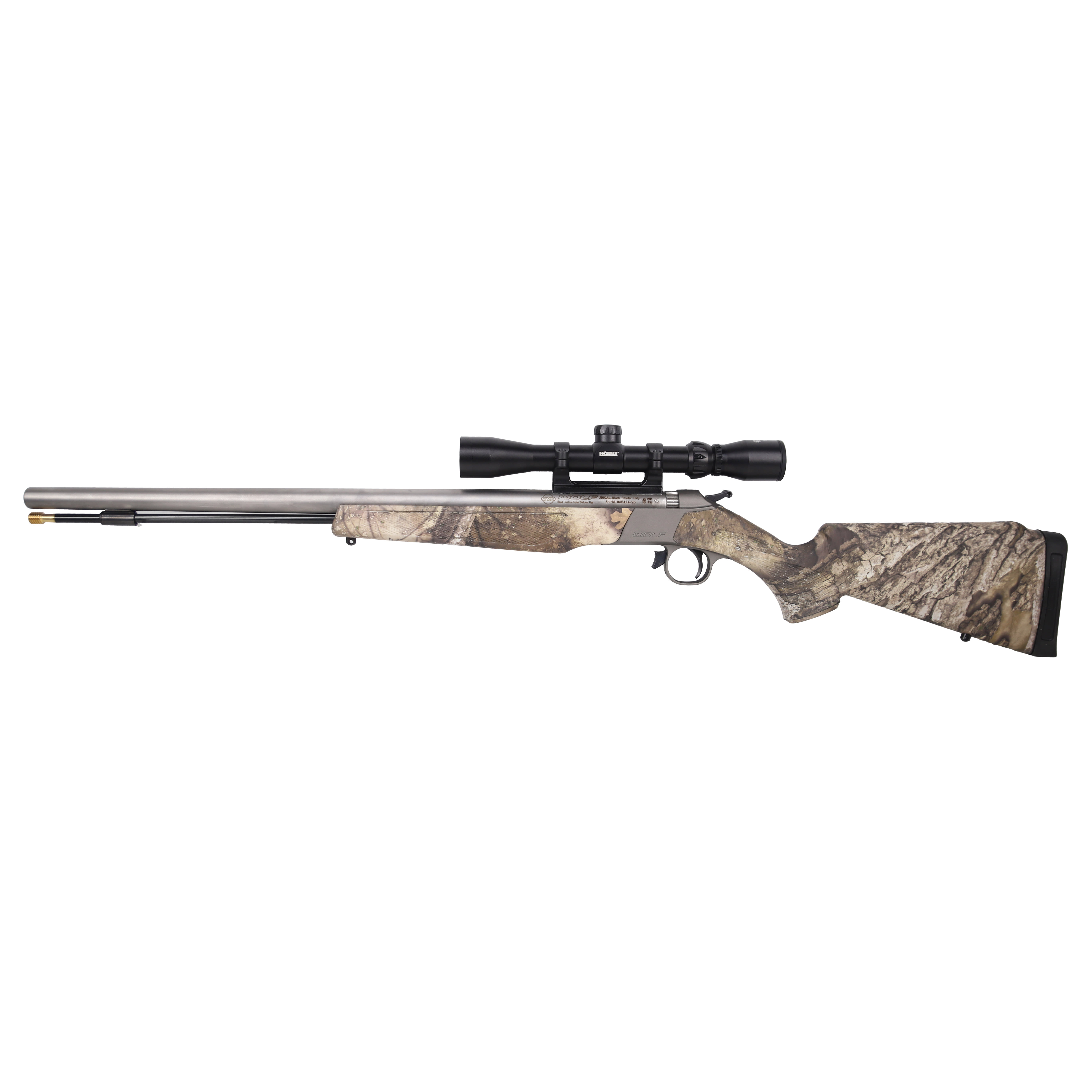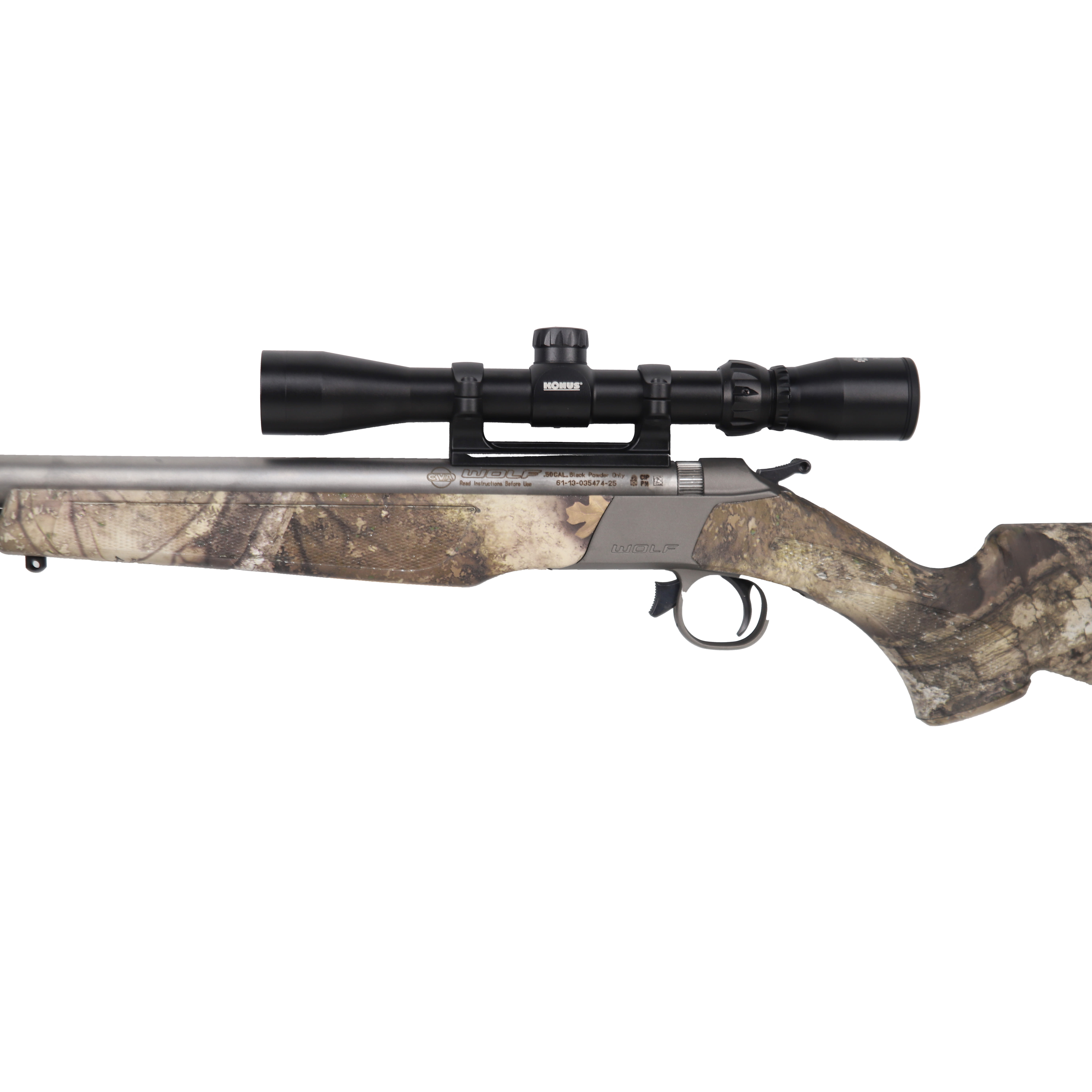 The CVA Wolf .50 Cal Muzzleloader is engineered for hunters who demand reliability, power, and precision in the field. Its robust stainless steel barrel is built for the harshest conditions, ensuring long-lasting performance and consistent accuracy. The Wolf's RealTree APX camo finish blends seamlessly into the wild, giving you the edge in concealment for close encounters. Outfitted with the Konusshot 3-9x32 riflescope, you'll experience enhanced precision and the versatility to adapt to varying distances and lighting conditions. The Wolf's ergonomic design and dependable ignition system make every shot smooth and consistent, giving you the confidence to make the most of every opportunity. Whether you're a seasoned black powder enthusiast or a newcomer, the CVA Wolf is a dependable companion for your next hunt.