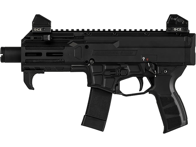 The CZ Scorpion 3 Plus Micro 9mm 20rd 4.2" 1/2x28 Bbl Black SB Tactical Brace Pistol with (5) Mags is a compact, semi-automatic 9mm pistol built on CZ’s latest Scorpion 3+ Micro platform. It features a 4.2 in cold hammer-forged barrel threaded 1/2×28 to accept muzzle devices or suppressors and comes with five 20-round magazines for extended shooting capability. The pistol is constructed on a rugged black polymer frame with M-LOK compatible handguard, ambidextrous manual safety, and adjustable front and rear iron sights. An SB Tactical pistol brace enhances control and stability, while the design includes optics-ready capability for mounting a red dot. With a compact length of about 14.6 in, a balanced feel, and reliable feeding, the Scorpion 3+ Micro is well-suited for personal defense, range sessions, and dynamic shooting applications where maneuverability and accessory flexibility matter.