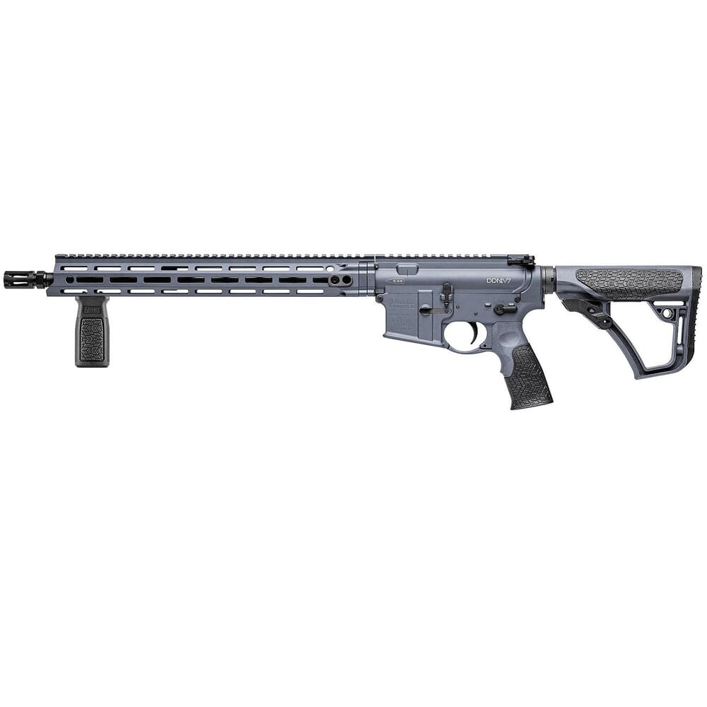 The Daniel Defense DDM4V7 is available in 5.56 NATO and .300 Blackout both with 16" barrels. Additionally, there is a DDM4V7 Pro that features an 18" barrel and the SLP models that feature a 14.5" barrel with a pinned and welded 1.5" flash hider to comply with NFA regulations. Lightweight (LW) versions of DDM4V7 feature a lightweight profile barrel that sheds overall rifle weight without giving up the full length handguard.