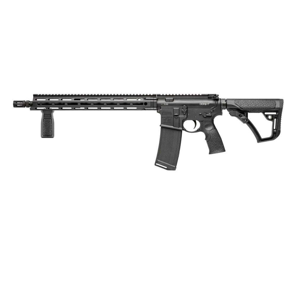 The Daniel Defense DDM4V7 5.56mm NATO 16" 1:7 Black NJ Compliant Rifle is a semi-automatic AR-15-style rifle built to meet New Jersey’s strict regulations. It features a 16-inch cold hammer forged barrel with a 1:7 twist rate, a mid-length gas system for smooth cycling, and a chrome-lined barrel for durability. The rifle has 7075-T6 aluminum upper and lower receivers with a Type III hard coat anodized finish, and a lightweight M-LOK handguard for accessory mounting. It includes an ambidextrous charging handle, soft-touch pistol grip and buttstock, and a Picatinny rail for optics. Designed without a flash suppressor, bayonet lug, or collapsible stock, it complies with NJ laws. Weighing about 6.2 pounds, it’s a reliable, versatile rifle suited for sport shooting and home defense.
