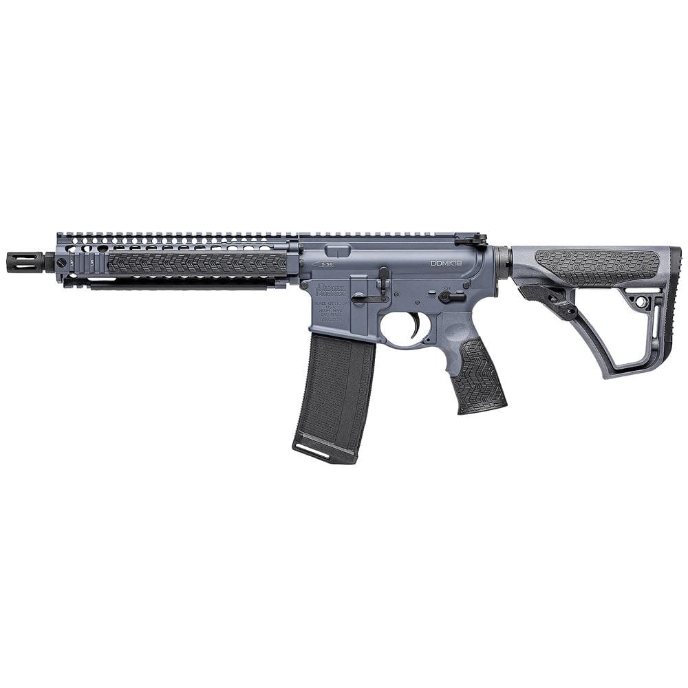 Available in both pistol and SBR models, the Daniel Defense MK18 is a weapon designed with maneuverability and modularity in mind. What sets the MK18 apart from Daniel Defense’s other MSR platforms is the RIS II Bolt-Up Rail System, the same tested by and issued to members of USSOCOM. The MK18 is built on a carbine length direct impingement gas system and features 10.5" free floated barrel. SBR models include Daniel Defense’s proprietary 6-position buttstock with over molding at contact points. Pistol models come with a SB-Tactical pistol stabilizing brace, and both configurations come with the over molded pistol grip.