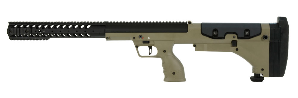 This black and flat dark earth stock receiver with monopod fits Desert Tech SRS-A1 rifles.
