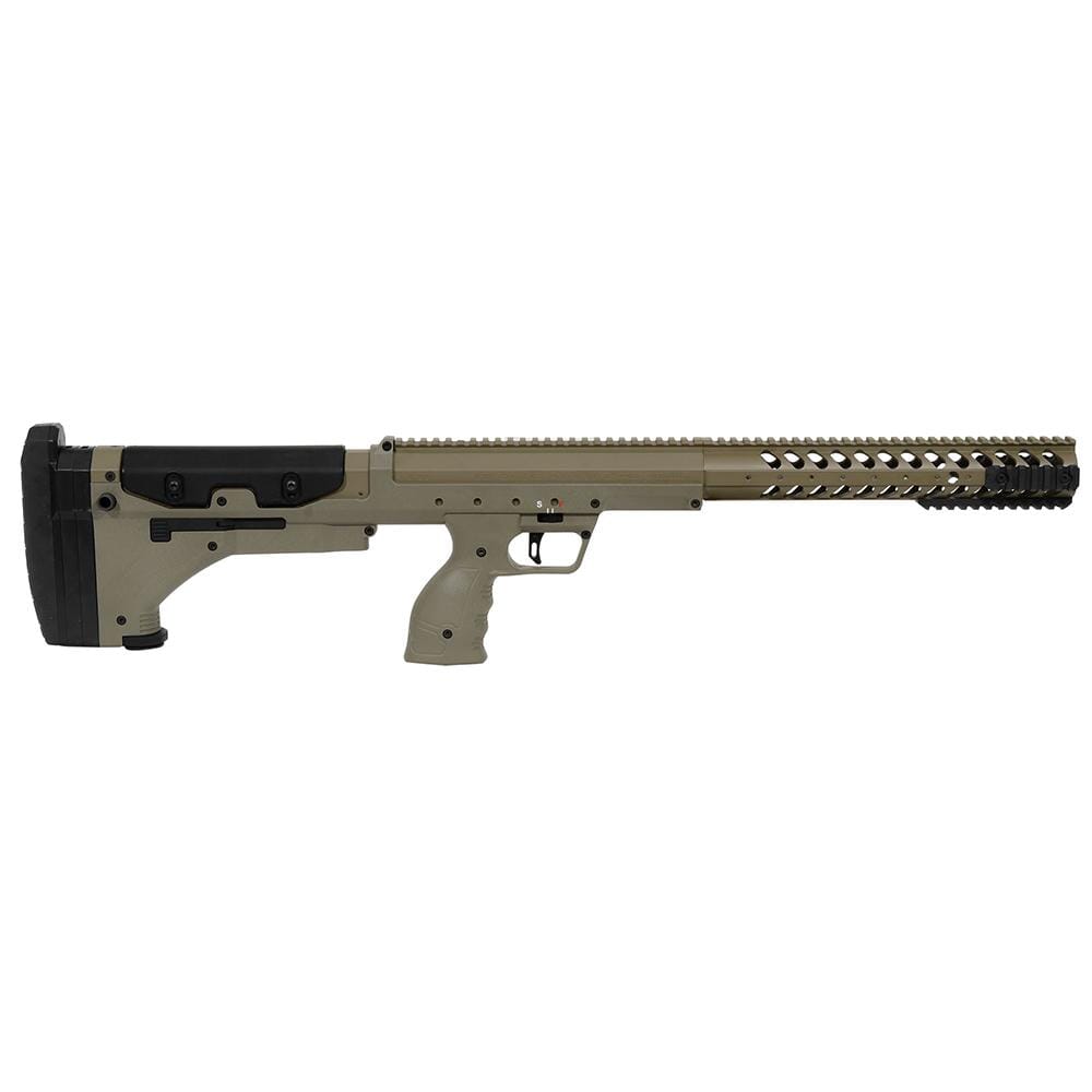 This flat dark earth, left-handed Desert Tech SRS A1 Rifle Chassis includes monopod.