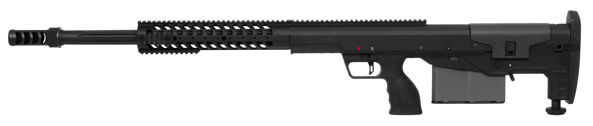 The perfectly-balanced bullpup configuration of the HTI makes it 11 inches shorter and 11 pounds lighter than the M107 currently in use by the US Army. The HTI maintains exceptional accuracy because of its match-grade (free-floated) barrels, chambers and crowns, a high-quality match trigger, and solid return-to-zero barrel mounting system. The HTI offers four powerful calibers to suit specific mission requirements. Caliber conversions for the Desert Tech HTI take sixty seconds and use the same HTI chassis with its free floated barrels and patented return-to-zero barrel mounting system.