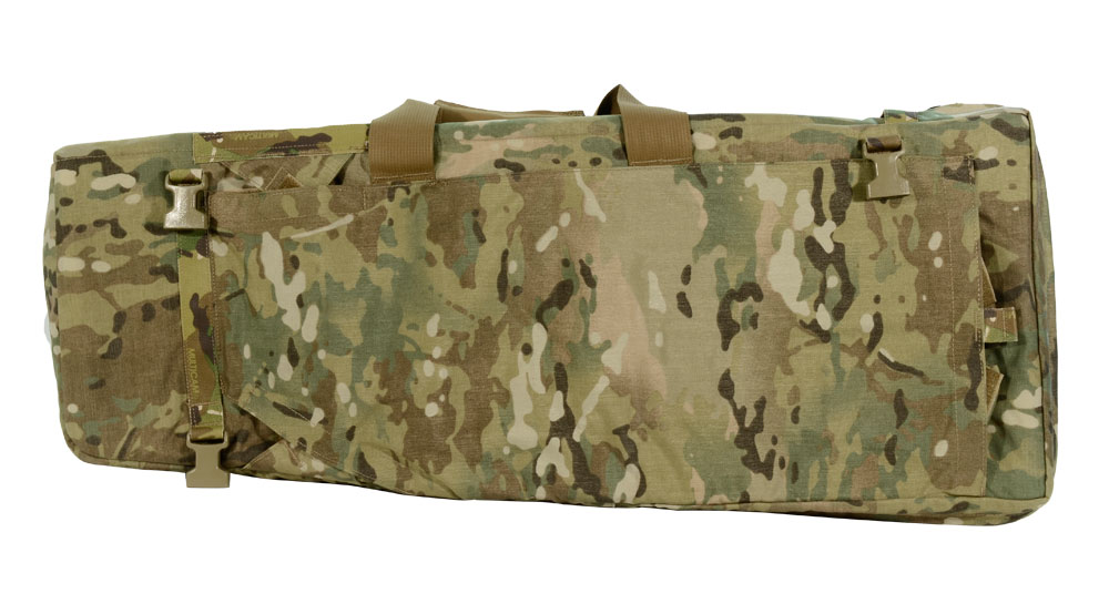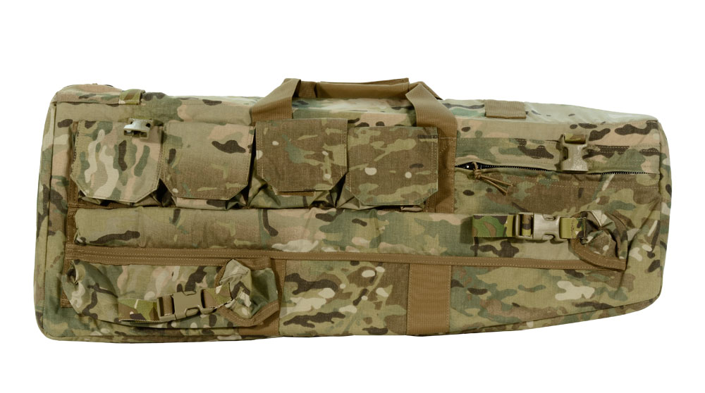 This multi-camo soft case with a holds a complete scoped Covert rifle system with up to a 26" barrel, magazines, silencer, and a conversion kit.