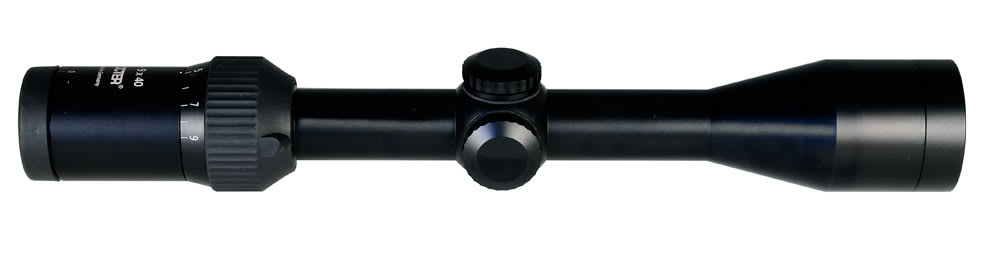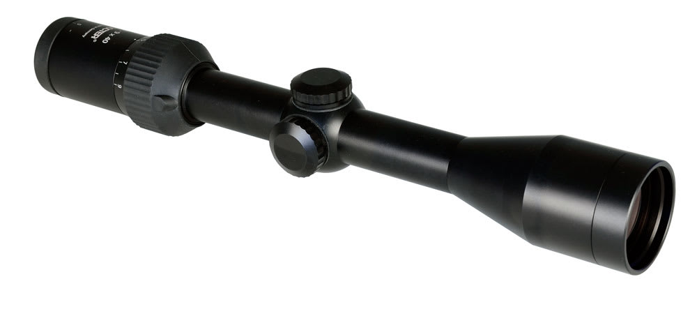 The Docter Sport 3-9x40 riflescope with plex reticle feature a rubber, slip-proof magnification ring and diopter adjustment, precise target turrets, and a parallax adjustment.
