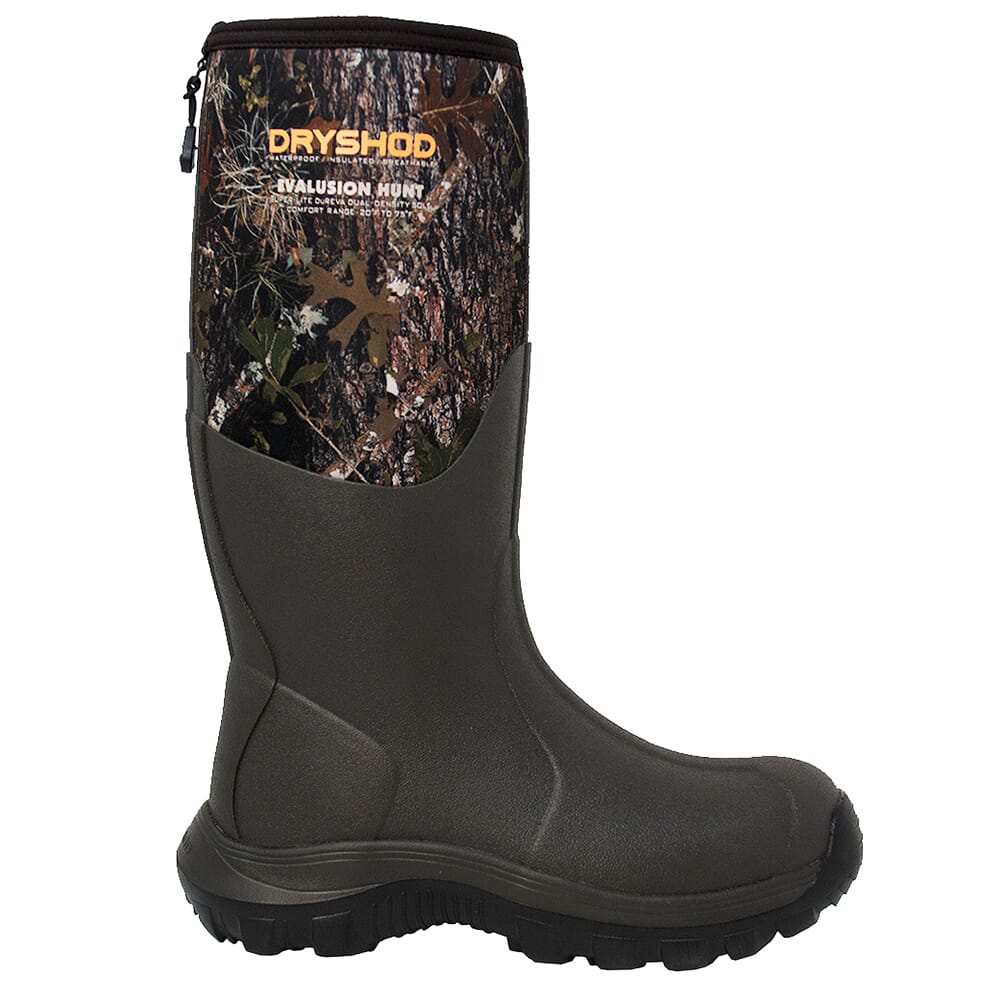 Dryshod’s Evalusion Hi Boots are designed for durability, comfort, and stability on unforgiving terrain. They come equipped with a DUREVA outsole that weighs 12% less than boots of a similar class. This outsole is made from an advanced fusion compound durable enough to eliminate the need for a secondary rubber sole and provides exceptional comfort, energy return and stable footing on a variety of ground surfaces. To ensure maximum traction, the Evaluation boots feature a multi-lug tread designed to provide silent footing by quietly flexing and bending over ground elements.