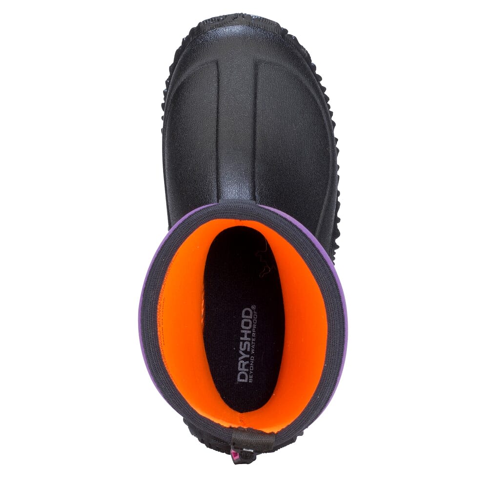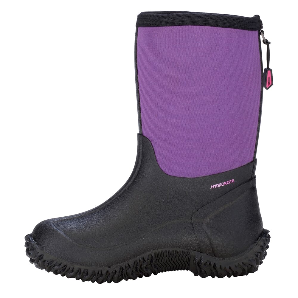 DryShod’s Tuffy Kid’s Sport Boot provides protection and comfort all year round. They come equipped with a Hydrokote, a water-repellent treatment that causes water to roll off and dry almost instantly, making the Tuffy Boots 100% waterproof. The 5mm of Densoprene foam insulation keeps the cold out, and genuine natural rubber hand-laid overlays ensure years of durability. Other features include a roll-down calf-pipe for venting in warmer temperatures or tucking you pant legs into, and convenient pullup tabs allows for easy on and off. In addition, the Tuffy Boots are outfitted with “Calendar” outsoles, which are specially made from uncured rubber with a rigid, puncture-resistant tuck board with a steel shank and latex-sponge heel wedge.