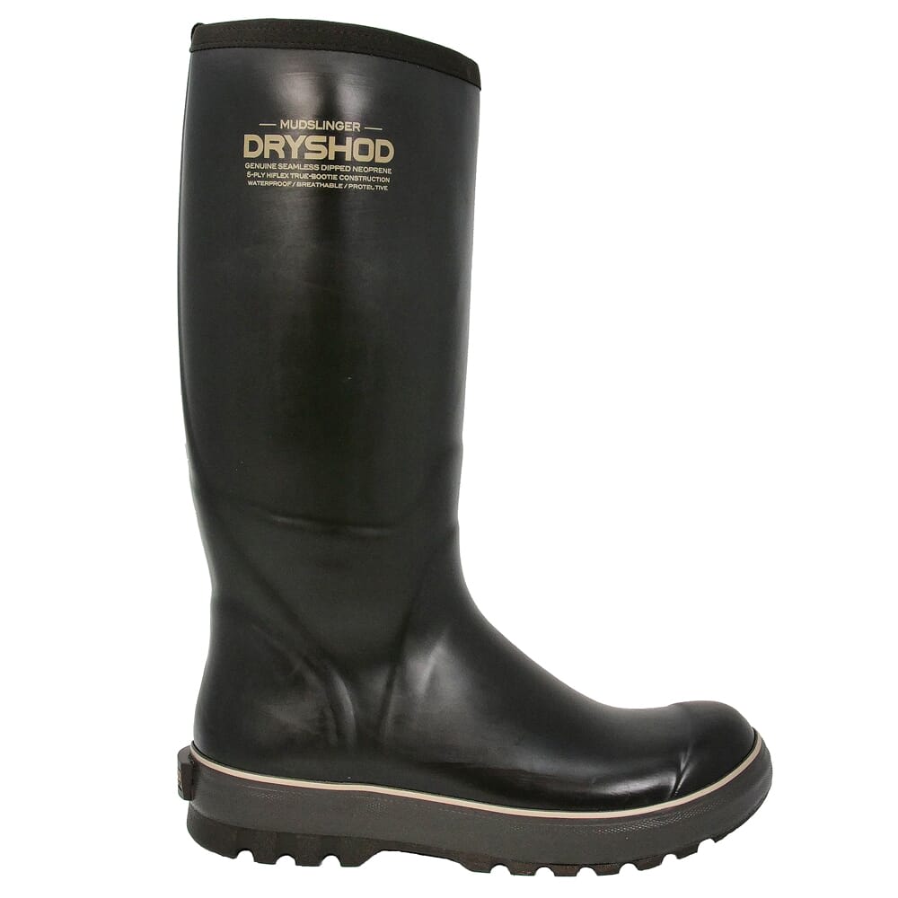 DryShod’s Mudslinger Boot provides protection and comfort all year round. They come equipped with a WIXIT Cool-Clad wicking airmesh lining with added micro-dot perforations. This design wicks away moisture and allows the air to flow more than traditional airmesh, keeping the foot cooler in warmer temperatures. A Hydrokote water-repellent treatment causes water to roll off and dry almost instantly, making the Mudslinger Boots 100% waterproof. The Mudslinger’s outer shell is composed of 5 layers of vulcanized rubber, which is resistant to most common barnyard chemicals and features reinforced toe, instep, heel pocket and perimeter foxing. Other features include a roll-down calf-pipe for venting in warmer temperatures or tucking you pant legs into, and convenient pullup tabs allows for easy on and off.