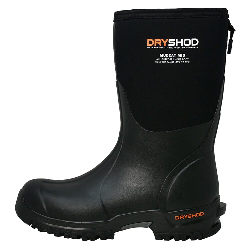 Dryshod’s Mudcat Mid Boots are designed for durability, comfort, and stability on unforgiving terrain. They come equipped with a superlight outsole that weighs 20% less than boots of a similar class. The outsole is durable and high abrasion to ensure maximum traction in hardscape surfaces and in the mud.A scalloped shank area provides additional stability on rocky terrain and a reinforced truck board with rigid shanks provides greater stability.