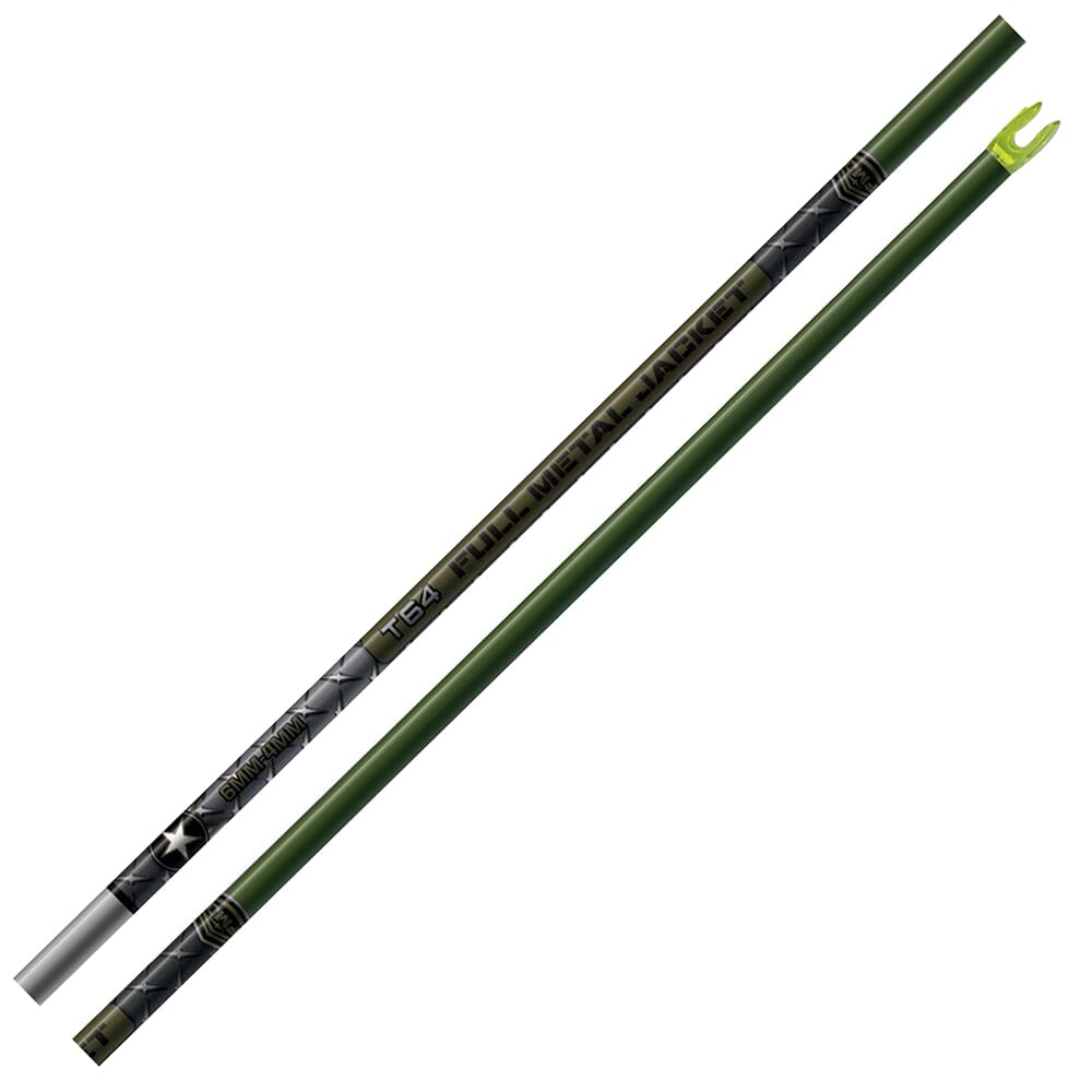 Deep arrow penetration is essential when hunting big game, but might not be enough without precise shot placement. Easton Archery?��s T64 FMJ Arrow Shafts combine both, delivering maximum lethality with the highest level of front-of-center accuracy. The T64 FMJ?��s shaft profile is precisely tapered, starting with a 6mm diameter in the front that seamlessly narrows down to 4mm at the nock end. This configuration increases the FOC by 30% without adding point weight for outstanding long range accuracy. The rear taper also causes a reduced-friction path to maximize penetration ?�� an excellent choice for big game lethality.