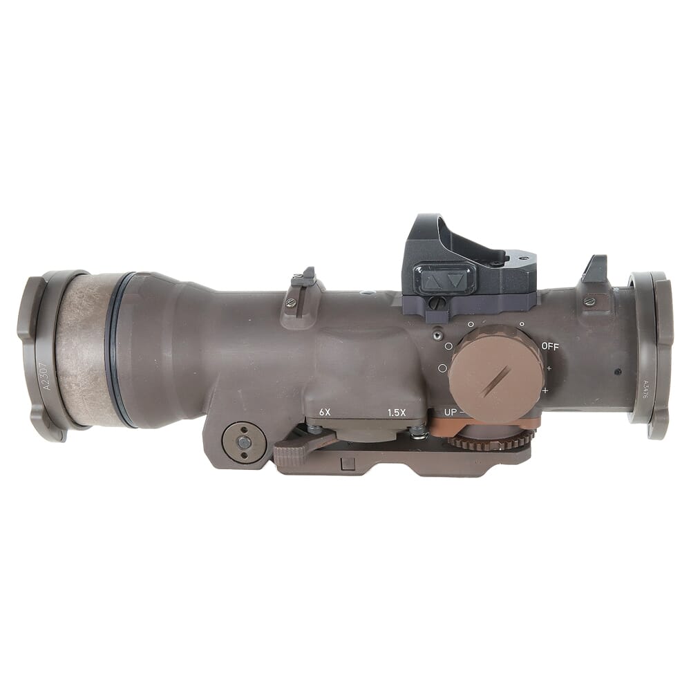 Elcan’s SpecterDR 1.5x/6x represents a major leap forward in magnified rifle optics. Unlike the majority of magnified optics that rely on twisting a magnification ring, the SpecterDR 1.5x/6x utilizes an innovative throw-lever to change magnifications. This allows the user to instantly switch between the 1.5x and 6x magnifications, making the SpecterDR perfect for both close and mid-range engagements. The SpecterDR’s close/mid-range capabilities are further enhanced by the optic’s illumination function, which can be used to illuminate the entire crosshair for longer-range targets, or illuminate a bright center dot for accurate close range shooting. Other features of the SpecterDR includes a generous field of view which remains the same at both 1.5x and 6x magnification, as well as a wide field of view for greater situational awareness. In addition, the SpecterDR 1.5x/6x includes an XOPTEK Micro Reflex sight for a close-range aiming solution or as a backup sight.