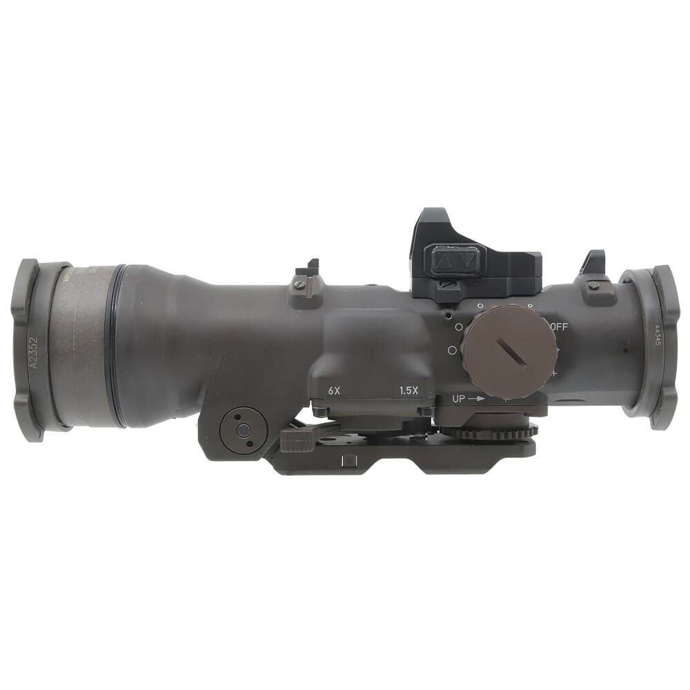 In addition to its impressive optical abilities, the SpecterDR 1.5x/6x ships with the exclusive A.R.M.S. MK-II Mount. Compatible with MIL-STD 1913 Picatinny Rails, the A.R.M.S. MK-II Mount features an integrated precision adjustment wheel, allowing the user to use the tip of their finger (no tool required) to change the tension on the mount for a perfect fit on the rail. The adjustment wheel on the A.R.M.S. MK-II mount comes pre-gauged and locked to the center of MIL-STD rails, and features .002 hash marks for fine-tuning tension. Furthermore, the SpecterDR 1.5x/6x includes an XOPTEK Micro Reflex sight for a close-range aiming solution or as a backup sight.