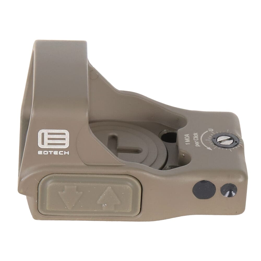 The EFLX Mini Reflex Sight is EOTech’s first venture into the market of reflex optics, and features the durability and high-performance that EOTech is known for. The EFLX sports a design reminiscent of EOTech’s larger rifle-mounted optics with its wide, rectangular window for an excellent field of view and outstanding performance in low-light conditions. This Mini Reflex sight is designed for use with optics-ready pistols, and mounts to the slide via Leupold Delta Point Pro footprints. The EFLX can also be used as a backup sight on rifles with magnified optics. Other features on the EFLX include user-friendly controls such as a top-loading battery compartment – allowing the battery to be changed without removing the optic from the weapon – and large, easy to use buttons. In addition, the EFLX utilizes a durable aluminum housing and is available with either a 3 MOA or 6 MOA reticle.