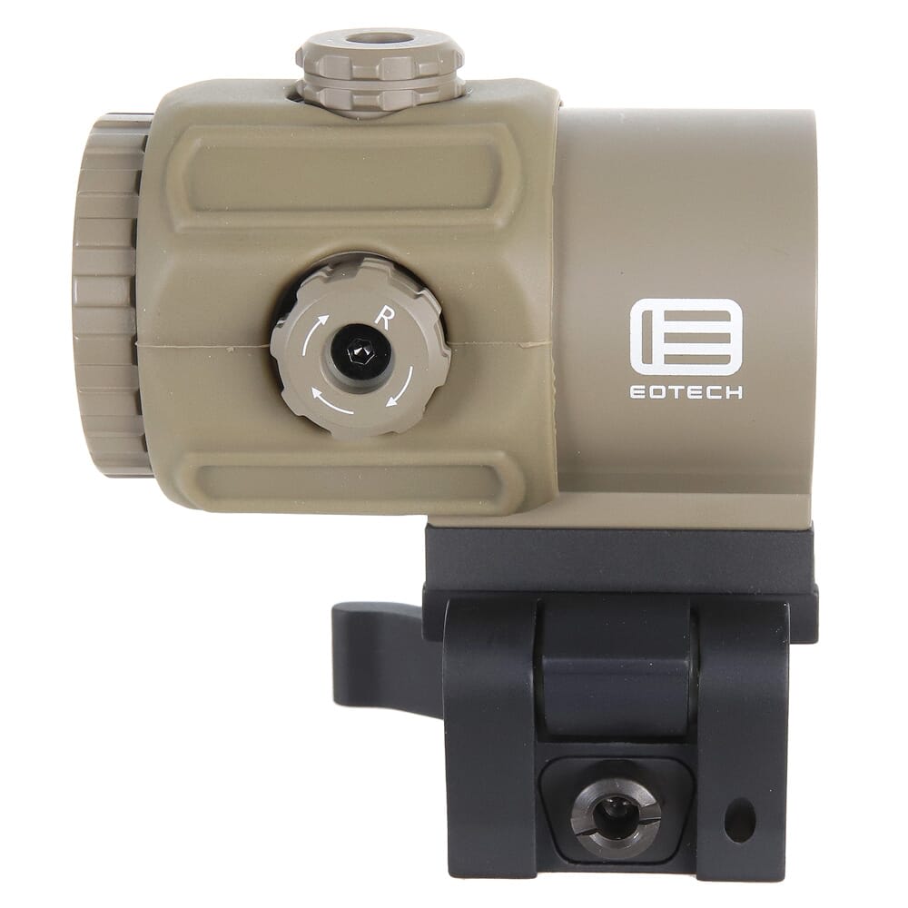 EOTech's G43 Micro 3x Magnifier is one of the most lightweight and compact red dot/holographic sight magnifiers available. The G43 takes much of its design from the battle-proven G33 magnifier, but makes use of a much more compact design. The G43 itself works in conjunction with a EOTech HWS, and delivers a highly versatile aiming solution for targets at both close-range and medium-range by allowing the user to rapidly switch between magnified and unmagnified shooting.