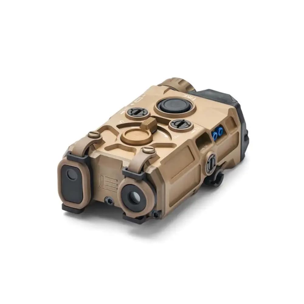 The EOTech OGL‑C‑T On‑Gun Laser combines a compact, rugged aluminum housing and a versatile aiming/illumination suite - with a visible green laser, IR aiming laser, and VCSEL‑based IR illuminator - all optically aligned on a shared bench for precise zeroing and consistent performance. Weighing roughly 8 ounces and sized similar to a deck of cards, it’s well‑suited for mounting on a rifle’s top rail or handguard without excessive bulk. A single CR123A battery powers the unit for up to 9 hours, while a Modlite‑style remote pressure switch gives ergonomic control from virtually any grip or mounting location. The IR illuminator offers adjustable beam divergence (spot to flood) via a sliding lever - letting operators tailor illumination quickly to their environment - and the dual visible/IR lasers make it equally effective for daylight aiming or night‑vision use. Designed with durability and field‑use ruggedness in mind, the OGL‑C‑T is a flexible, professional‑grade aiming/illumination module for a wide range of rifle platforms.