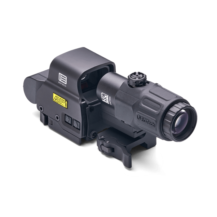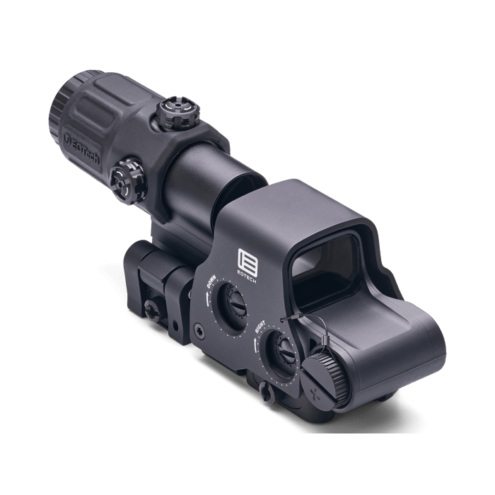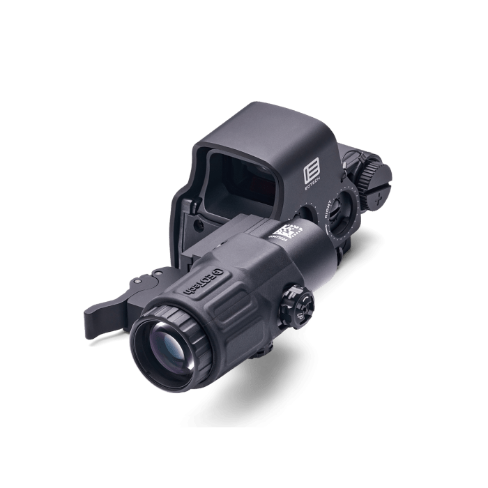 The EOTech HHS STC Holographic Hybrid Sight System is a high-performance optics package that combines the precision of the EXPS3-0 Holographic Weapon Sight with the versatility of the G33 3x magnifier, all mounted on a Gorilla Switch-to-Center (STC) system. This setup allows for rapid transitions between close-quarters and mid-range engagements, making it ideal for dynamic tactical scenarios. The EXPS3-0 features a 68 MOA ring with a 1 MOA red dot, offering a wide field of view and quick target acquisition. With 20 daylight brightness settings and 10 additional settings compatible with night vision devices, it ensures optimal visibility in various lighting conditions. The G33 magnifier provides 3× magnification and can be swiftly deployed or stowed using the STC mount, which positions the line of sight at 2.26 inches above the rail for a natural shooting posture. Constructed to withstand harsh environments, the system is waterproof up to 33 feet and operates effectively in temperatures ranging from -40°F to 140°F. Whether in tactical operations, competitive shooting, or versatile hunting applications, the HHS STC offers exceptional clarity, durability, and adaptability.