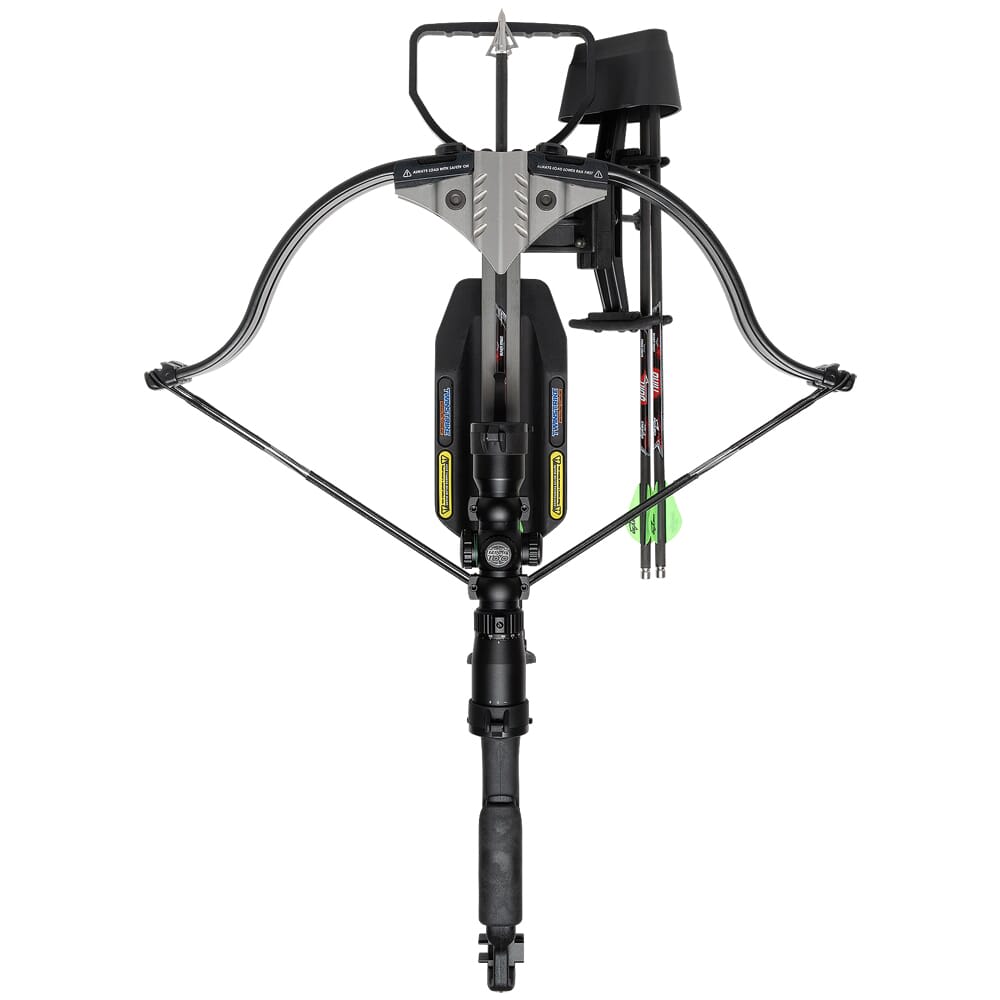 Sleek, lightweight, and perfectly balanced, the TwinStrike Tac2 has everything you need in a crossbow – times two. This totally unique recurve crossbow is equipped with not one, but two rails, similar to the barrel configuration of an under/over shotgun. It features two, 4lb, match-grade, frictionless triggers; the front fires the top arrow and the rear trigger fires the bottom arrow. With two arrows at your disposal, the TwinStrike Tac2 can be used to engage two targets by eliminating the need for a time-consuming reloading process. The TwinStrike can also be used to effectively “double tap” targets by firing both arrows in rapid succession, and can even fire both arrow simultaneously by pulling both triggers for twice the penetration. In addition to its double-shot capabilities, the TwinStrike Tac2 has an ultra-short length of just 32.125 inches, making it an excellent choice for shooting in confined spaces such as a blind or tree stand. It also comes equipped with the proprietary CeaseFire Technology which provides an additional level of safety by preventing the crossbow from firing unless an arrow is loaded and the safety is disengaged. Other features of the TwinStrike Tac2 include an easy to use and silent External Crank mechanism to safely and securely cock the crossbow or de-cock it without shooting an arrow. In addition, the TwinStrike Tac2 ships with the Tact-100 Crossbow scope, with a multi-reticle system and is calibrated for 100 yards.
