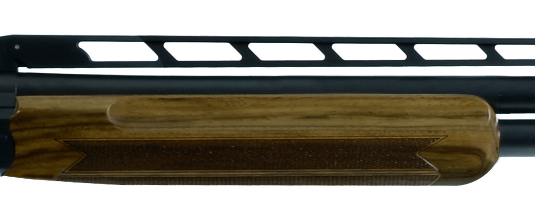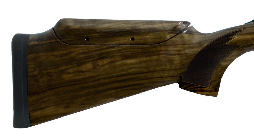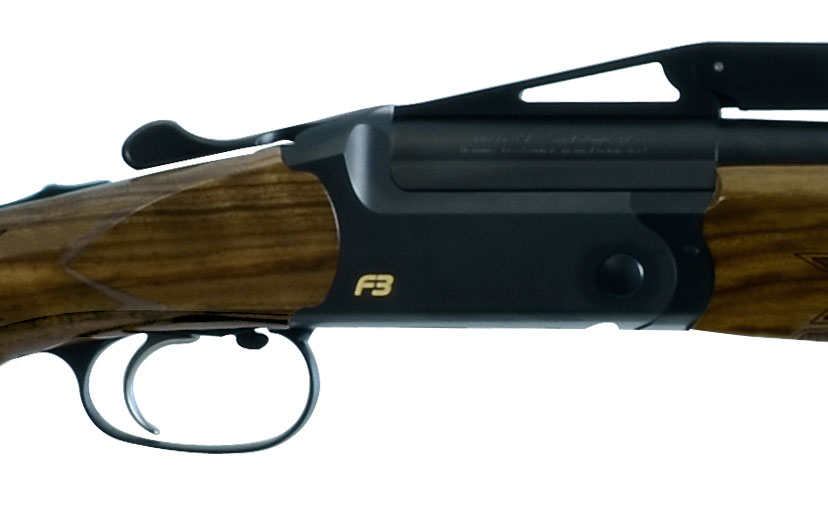 The Blaser F3 Super Trap Standard 12-gauge over and under shotgun offers a black action with gold-colored F3 logo, adjustable rib, KickEez rubber recoil pad, mid-bead, front bread, barrel balancer, and a stock balancer.