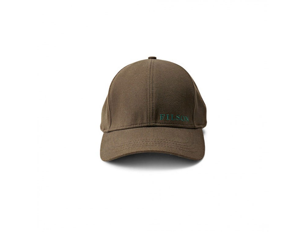 This brown Filson Logger Cap is a classic which features six-panel construction, pre-curved bill, breathable cotton twill fabric, brass buckle on adjustable strap in back, and embroidered Filson logo.
