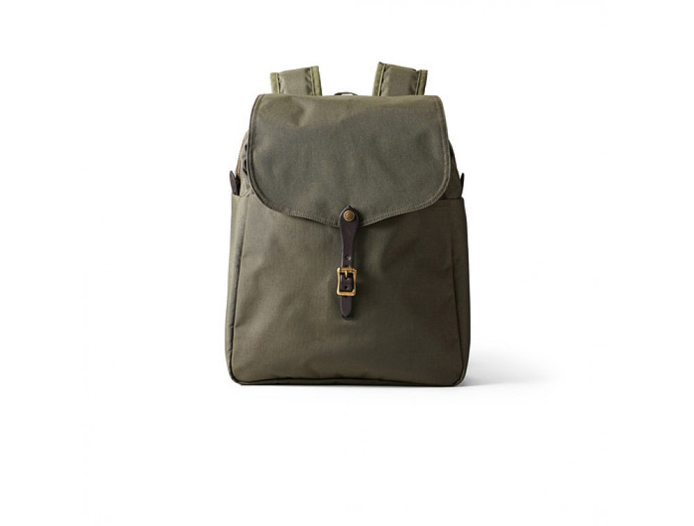 The Filson daypack has room for everything! This otter green pack features qater-repellent matte nylon fabric, poly/cotton lining, fully padded back, and lined shoulder straps.