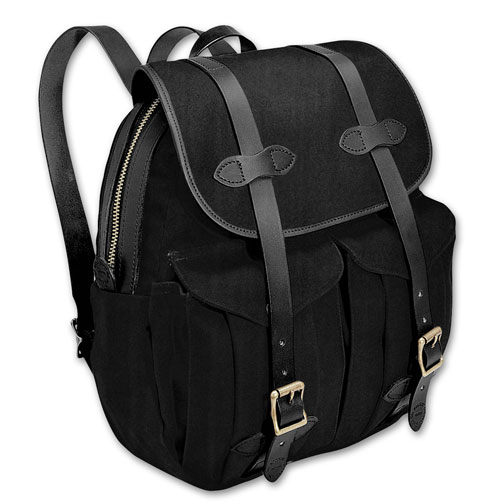 Our rucksack is as rugged and functional as it is handsome. This backpack's large top opening makes for easy packing and includes two large expandable front pockets and an open back pocket. A two-way solid brass zipper with large leather pulls. Bridle Leather carrying handle and adjustable straps. Meets carry-on requirements. Made in USA.