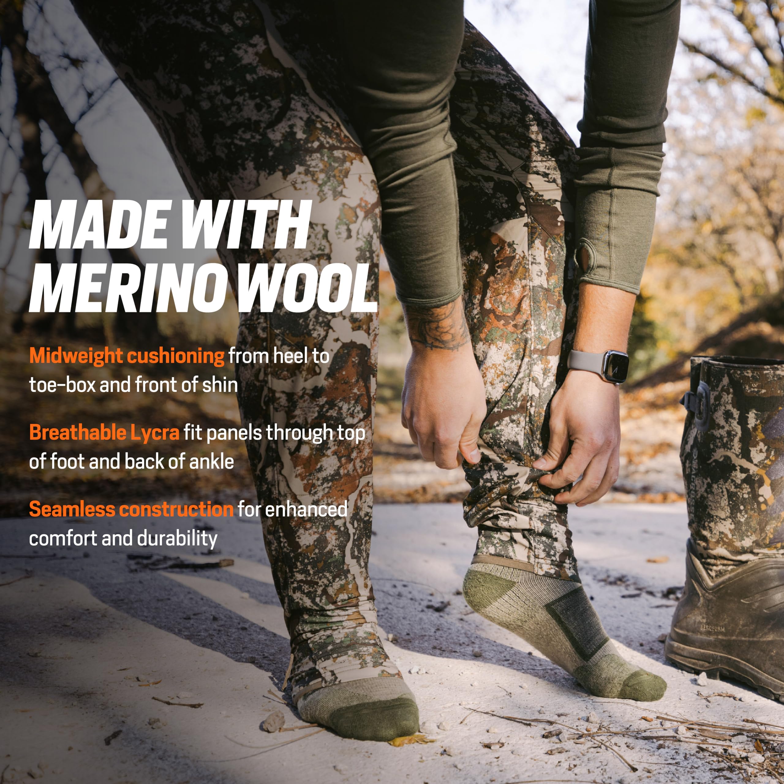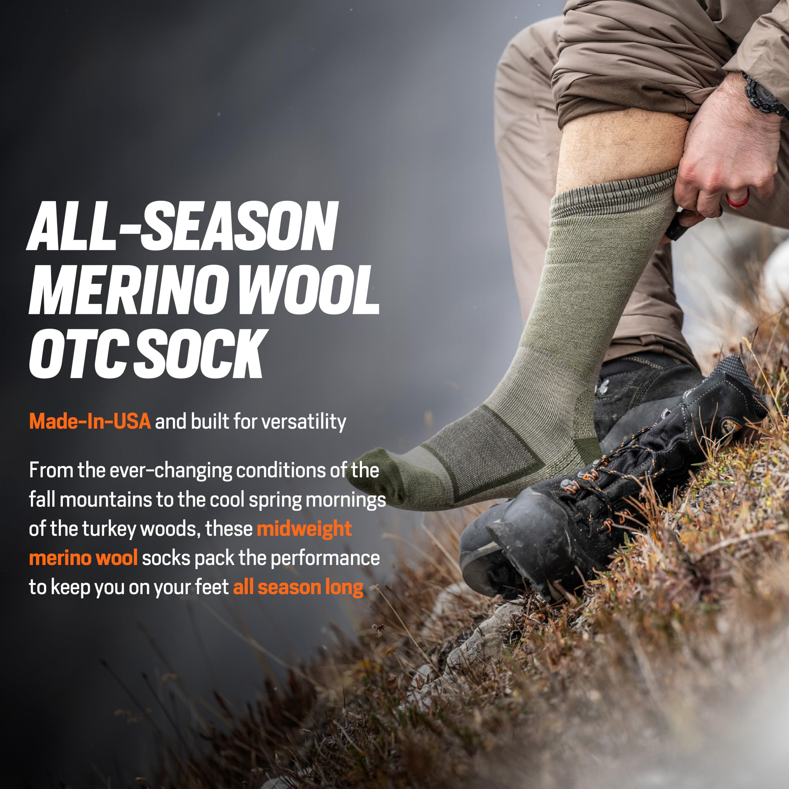 Experience unmatched comfort and performance with the First Lite All Season Merino OTC Sock. Crafted for the dedicated outdoors enthusiast, this sock blends the natural temperature-regulating and moisture-wicking properties of Merino wool with the durability needed for rugged adventures. The over-the-calf design ensures your lower legs are fully protected, whether you're trekking through dense forests, hiking mountain trails, or simply enjoying everyday wear. The conifer green color adds a touch of natural style, seamlessly blending with your outdoor gear. Designed in various sizes for a secure, stay-put fit, this sock is your reliable companion for all-season comfort and resilience, no matter the journey.