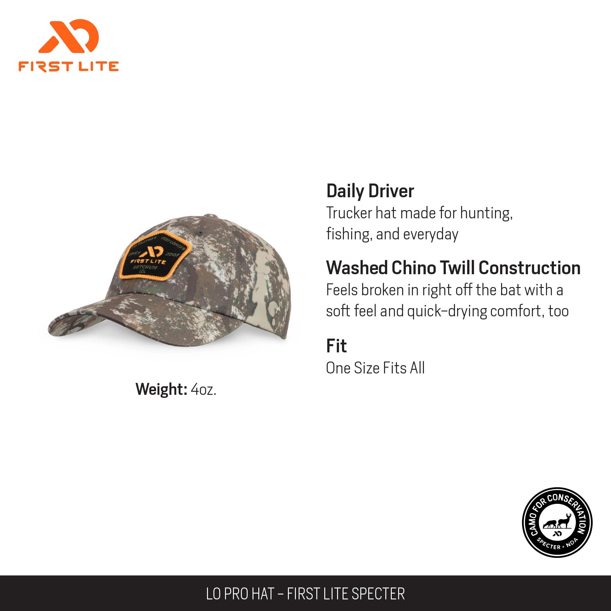 Engineered for hunters and outdoor enthusiasts who demand both performance and stealth, the First Lite Lo-Pro Cap in Specter is the ultimate companion for your next adventure. Its streamlined, barely-there design ensures you stay comfortable and focused, whether you're glassing ridgelines or stalking through dense timber. The Specter camouflage pattern is meticulously crafted for the ultimate in concealment, blending seamlessly into a variety of natural environments. Built for the rigors of the field, the Lo-Pro Cap is crafted from tough, breathable materials, ensuring you stay cool and protected through changing weather and intense activity. The adjustable fit guarantees a secure, custom feel, so you can move with confidence and stay locked in on your target.