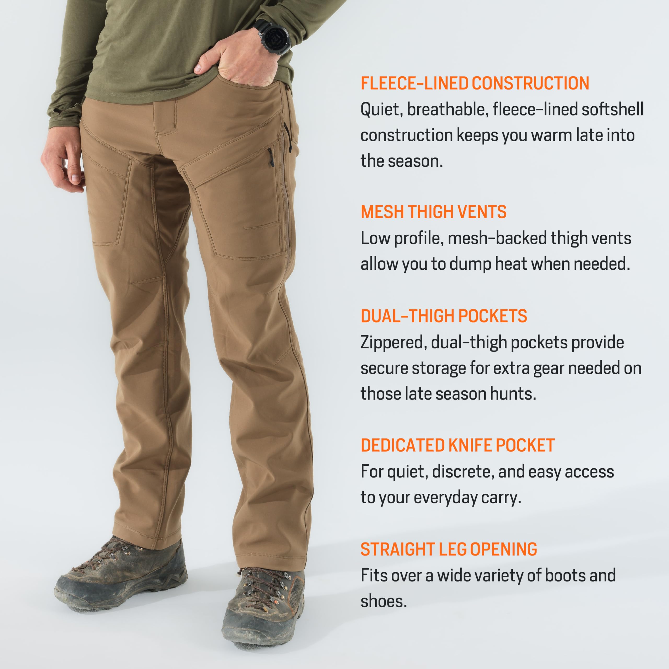 Engineered for the dedicated outdoorsman, the First Lite Men's 308 Lined Pant in Dry Earth delivers the perfect blend of rugged durability and cold-weather comfort. These pants are crafted for those who demand reliable performance in the field, featuring a robust, weather-resistant fabric that stands up to the toughest terrain. The integrated insulation ensures you stay warm and focused, even during long, frigid hunts. Thoughtfully designed with multiple pockets, you'll have quick, easy access to your essential gear, keeping you organized and ready for action. Whether you're tracking game or navigating the backcountry, these pants are your go-to for warmth, comfort, and functionality in the outdoors.