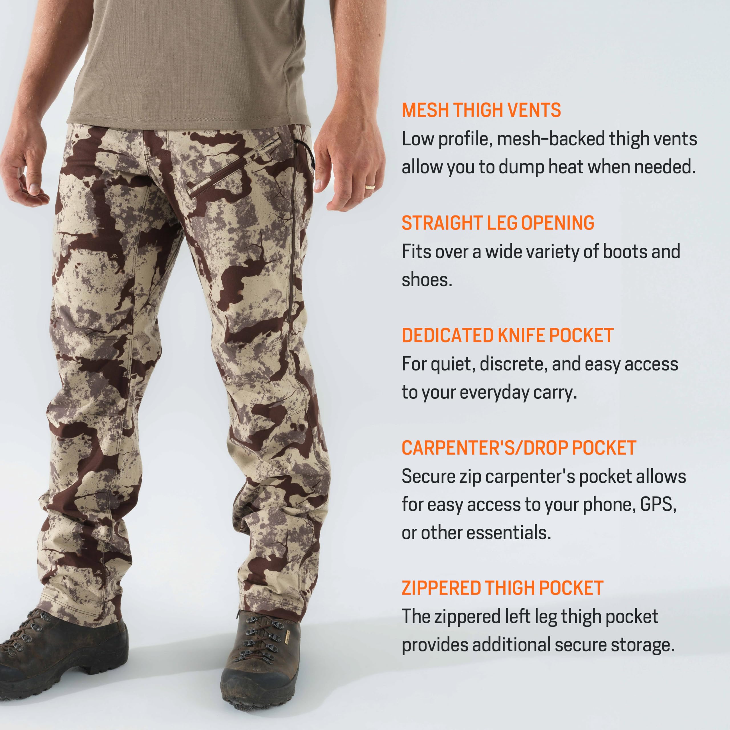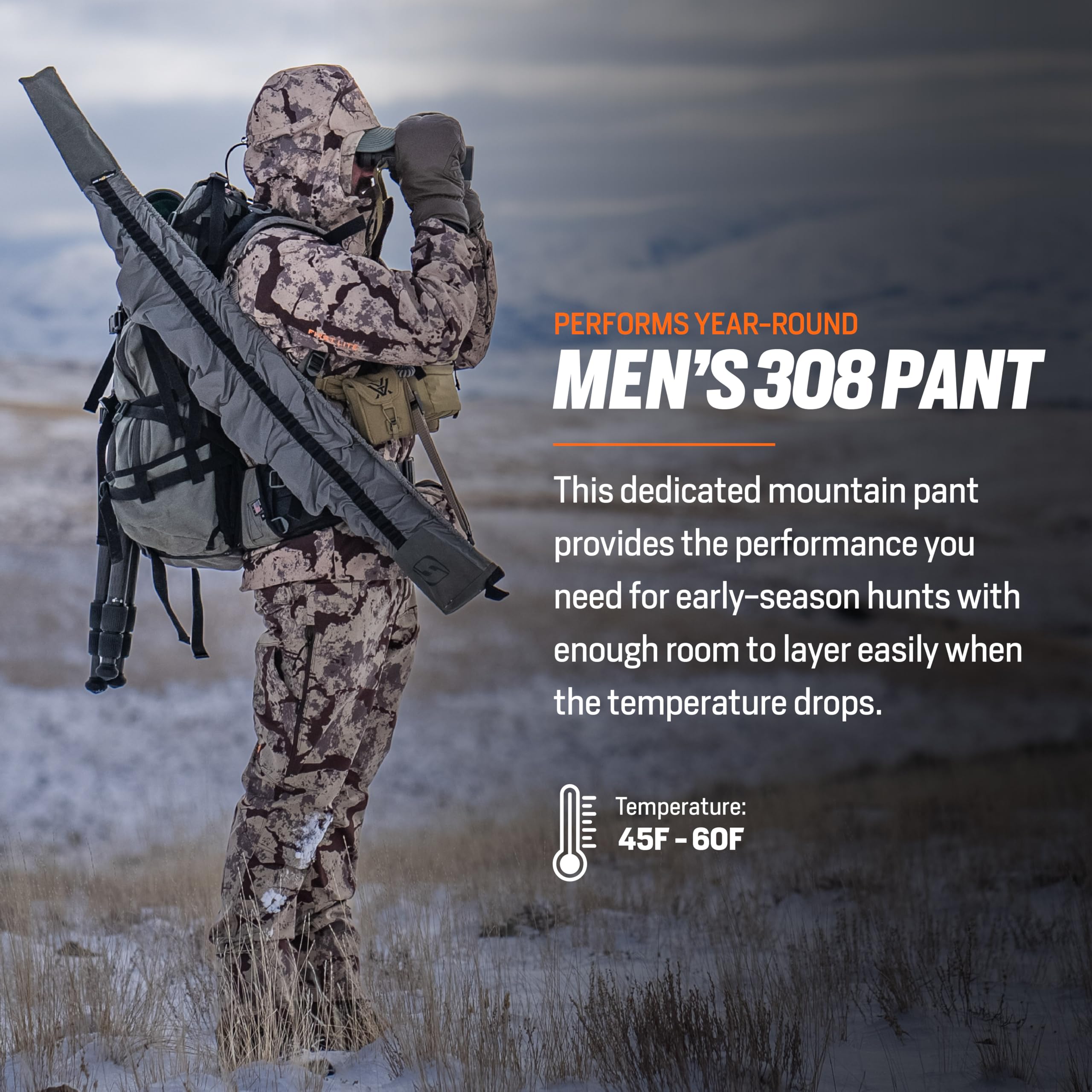 Engineered for the dedicated outdoorsman, the First Lite Men's 308 Pant in the Cerca 3030 pattern is the ultimate companion for hunting and rugged outdoor pursuits. Crafted for those who demand both resilience and comfort, these pants are built to withstand the rigors of the wild while ensuring you stay agile and focused. The Cerca 3030 camouflage pattern is meticulously designed to blend seamlessly into a variety of terrains, giving you the upper hand in concealment. Thoughtful design elements, such as a tailored fit and strategically placed pockets, provide the freedom of movement and practical storage you need for a successful day in the field. Whether you're stalking game or navigating dense brush, these pants are tailored to keep you comfortable and prepared for whatever the outdoors throws your way.