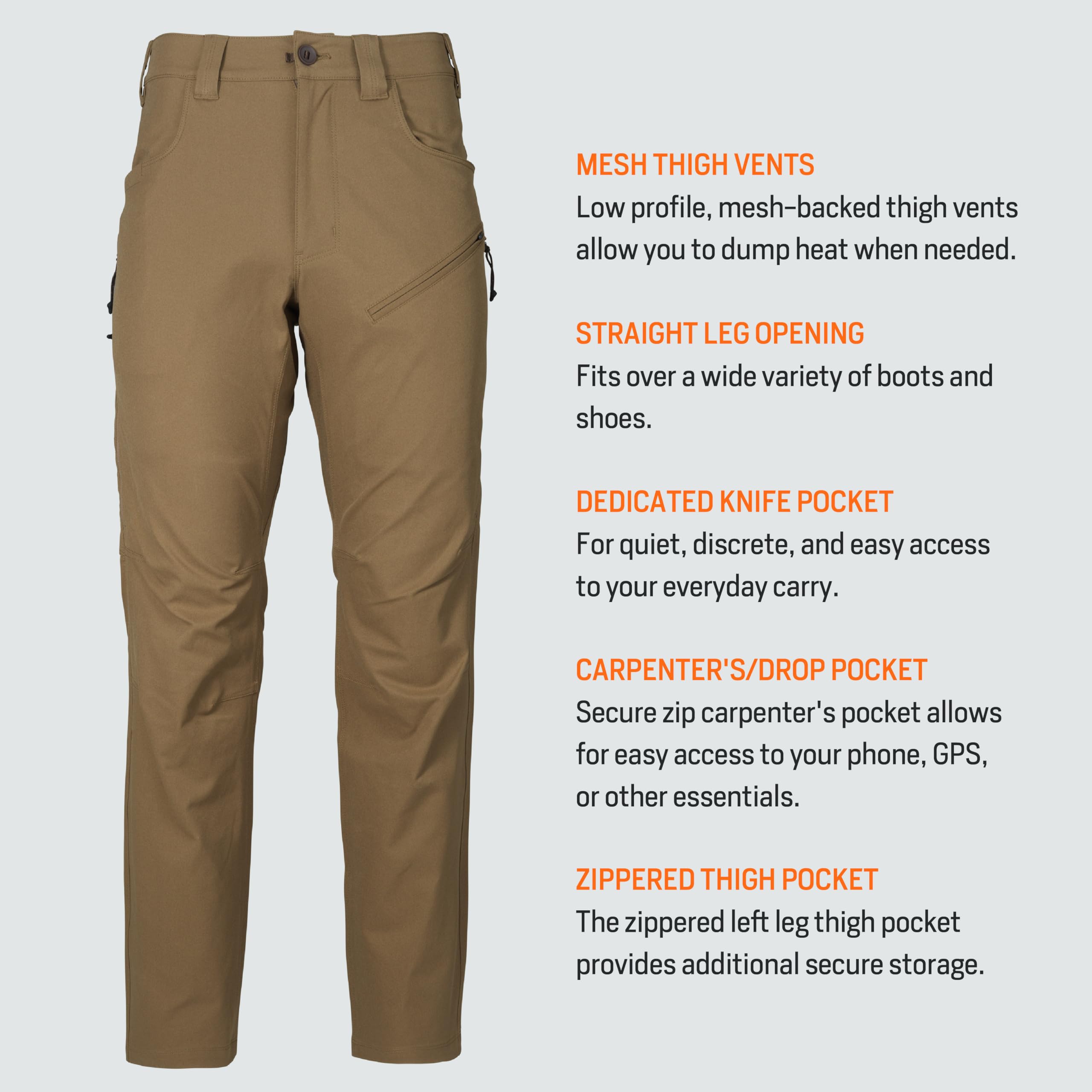Engineered for those who demand performance and versatility from their outdoor gear, the First Lite Men's 308 Pant in Dry Earth is the ultimate companion for any adventure. Whether you're trekking through rugged terrain, setting up for a hunt, or simply enjoying a day in the wild, these pants deliver the durability and comfort you need. The thoughtfully tailored fit ensures you move freely and confidently, while the rugged fabric stands up to the elements and the demands of the outdoors. With a design that seamlessly transitions from the backcountry to everyday life, these pants are as practical as they are stylish. Ample, strategically placed pockets keep your essentials secure and within reach, so you're always prepared for the next challenge. Experience the difference of gear built for the outdoorsman who refuses to compromise.