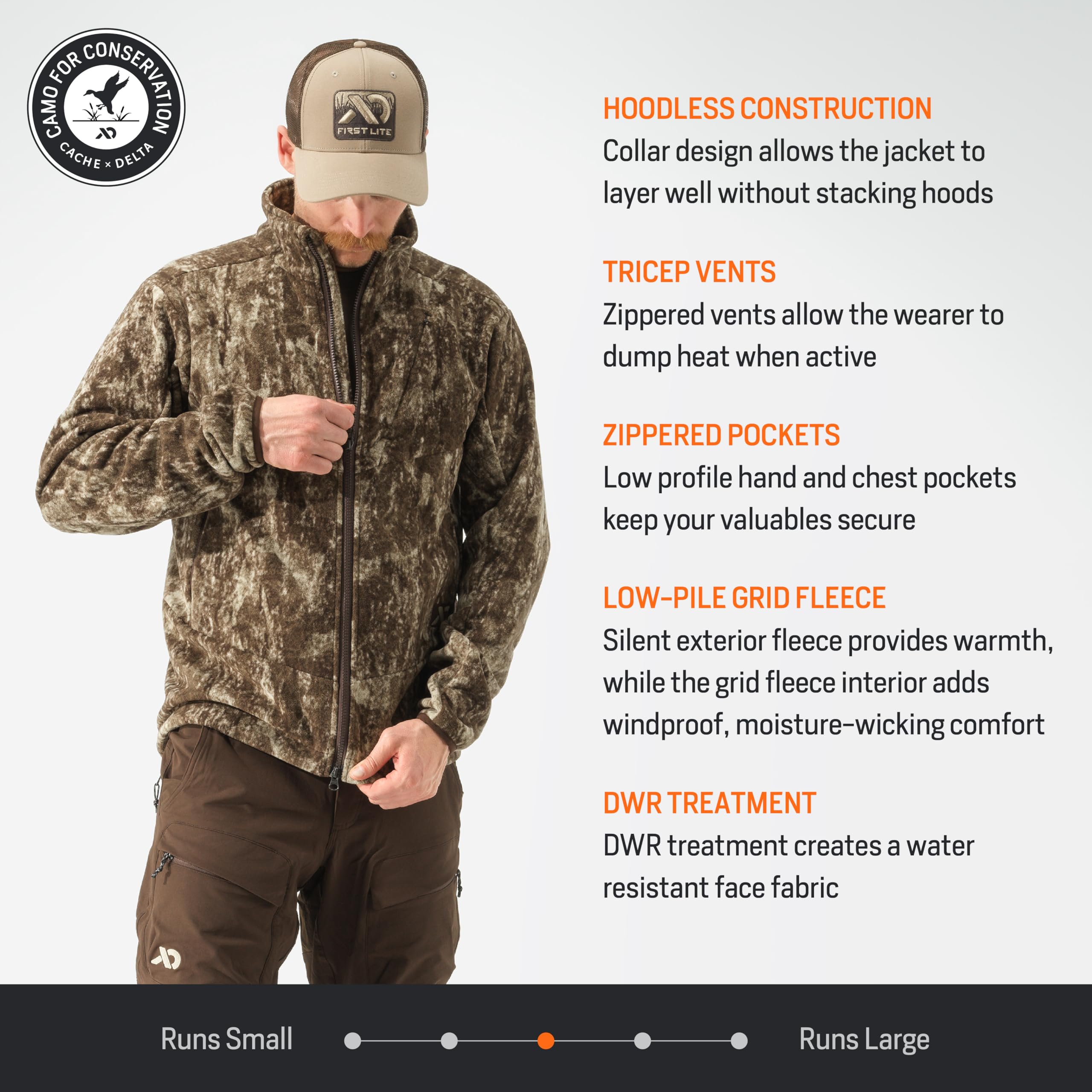 Experience the perfect blend of warmth, comfort, and style with the First Lite Men's Challis Fleece Jacket in Darkwater. Designed for the modern outdoorsman, this jacket is crafted to keep you cozy during brisk mornings in the field or relaxed evenings in town. The Challis fleece material is exceptionally soft, providing a plush feel against the skin while effectively trapping heat to keep you comfortable in changing conditions. The Darkwater colorway delivers a sleek, versatile look that transitions seamlessly from the trail to casual gatherings. With a full front zipper, you can easily adjust for ventilation or layer up as the temperature shifts. The relaxed fit ensures you have the freedom to move, whether you're hiking, camping, or simply enjoying the outdoors. Elevate your layering game with a jacket that's as functional as it is stylish.