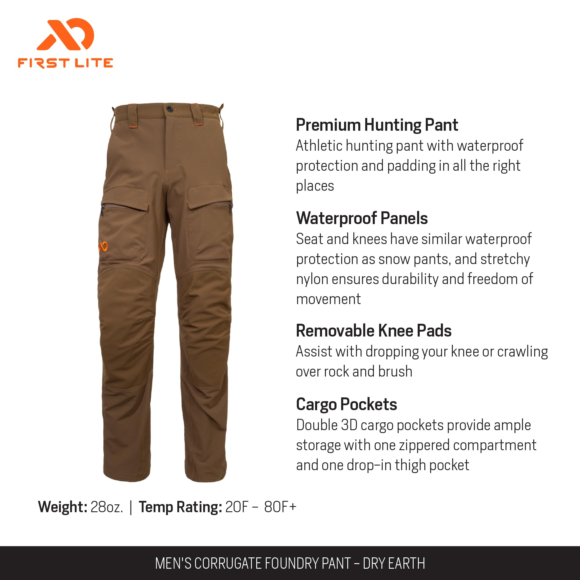 Engineered for the demands of the backcountry, the First Lite Men's Corrugate Foundry Pant is the ultimate companion for the modern outdoorsman. Crafted for those who refuse to compromise, these pants blend rugged durability with the freedom of movement you need to tackle any terrain. The Dry Earth color offers a low-profile, versatile look that transitions seamlessly from the field to the trail. Whether you're stalking game, navigating rocky paths, or setting up camp, the Corrugate Foundry Pant is built to keep you comfortable, cool, and protected. The lightweight, breathable construction ensures you stay agile and focused, while the tailored fit delivers a streamlined, athletic silhouette. Experience the confidence that comes from gear you can trust, and make every adventure your best yet.