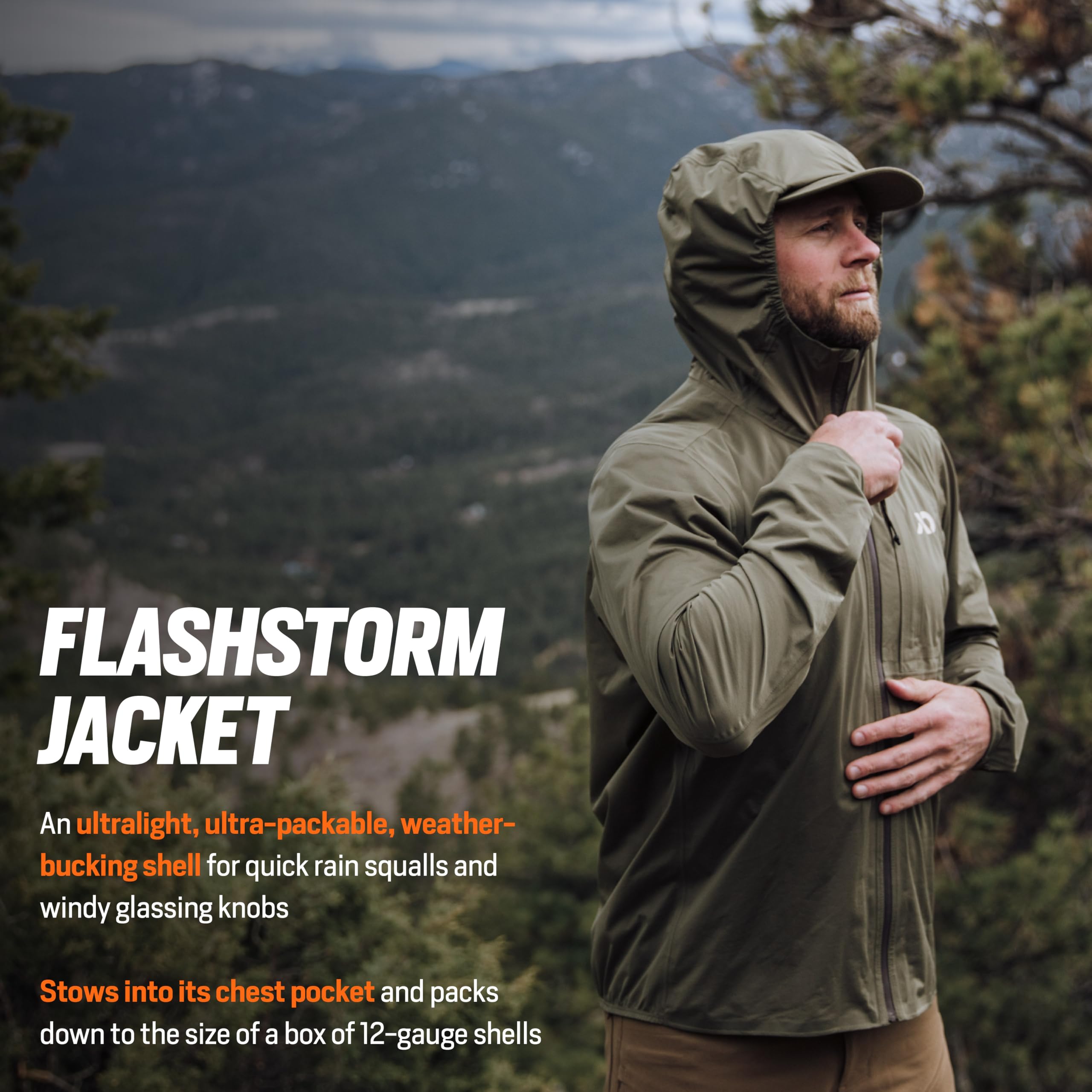 Engineered for the modern outdoorsman, the First Lite Men's Flashstorm Jacket in Conifer delivers the perfect balance of protection, comfort, and versatility for unpredictable weather. Whether you're hiking, hunting, or tackling daily adventures, this jacket keeps you dry and comfortable thanks to its advanced water-resistant and breathable fabric. The lightweight construction ensures you can move freely and pack the jacket away with ease, while its durable build stands up to the rigors of the wild. Thoughtful design details, like the adjustable hood and cuffs, allow you to tailor the fit to your needs, and multiple pockets provide secure, convenient storage for your essentials. The Flashstorm Jacket is your reliable companion for any outdoor pursuit, blending rugged performance with modern style.