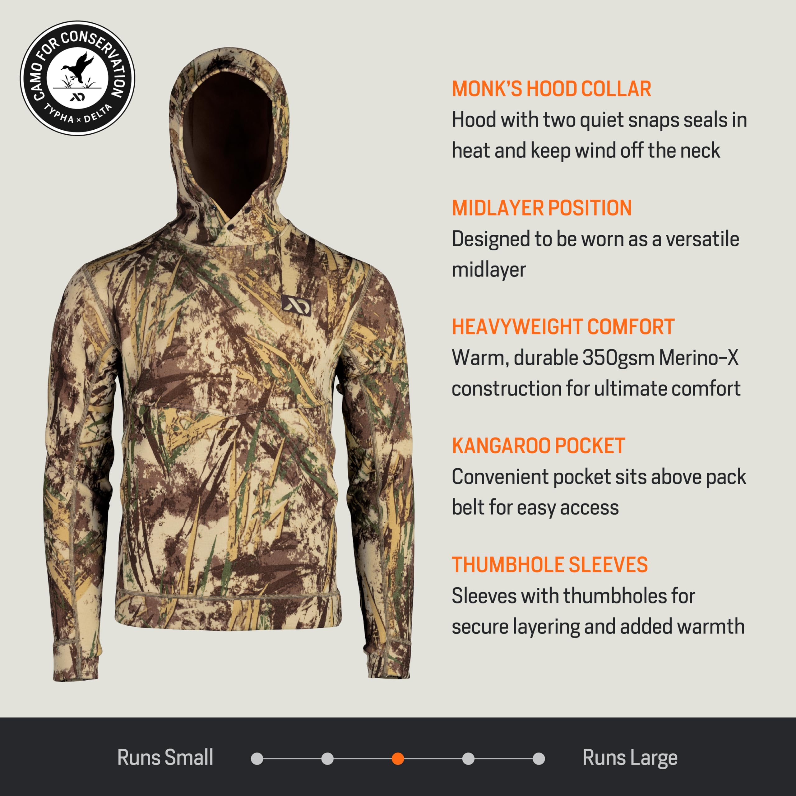 Engineered for those who demand performance and comfort in the harshest conditions, the First Lite Men's Furnace Hoody in Typha is the ultimate companion for your outdoor pursuits. Whether you're glassing at dawn, hiking in the backcountry, or layering up for a frigid day in the field, this hoody is designed to keep you warm and agile. The Furnace Hoody is crafted to trap heat while allowing your body to breathe, ensuring you stay comfortable and dry during high-output activities. The thoughtfully designed hood offers a snug, protective fit, shielding you from biting winds and sudden temperature drops. Built to withstand the rigors of the wild, this hoody is a reliable choice for those who refuse to let the cold slow them down.