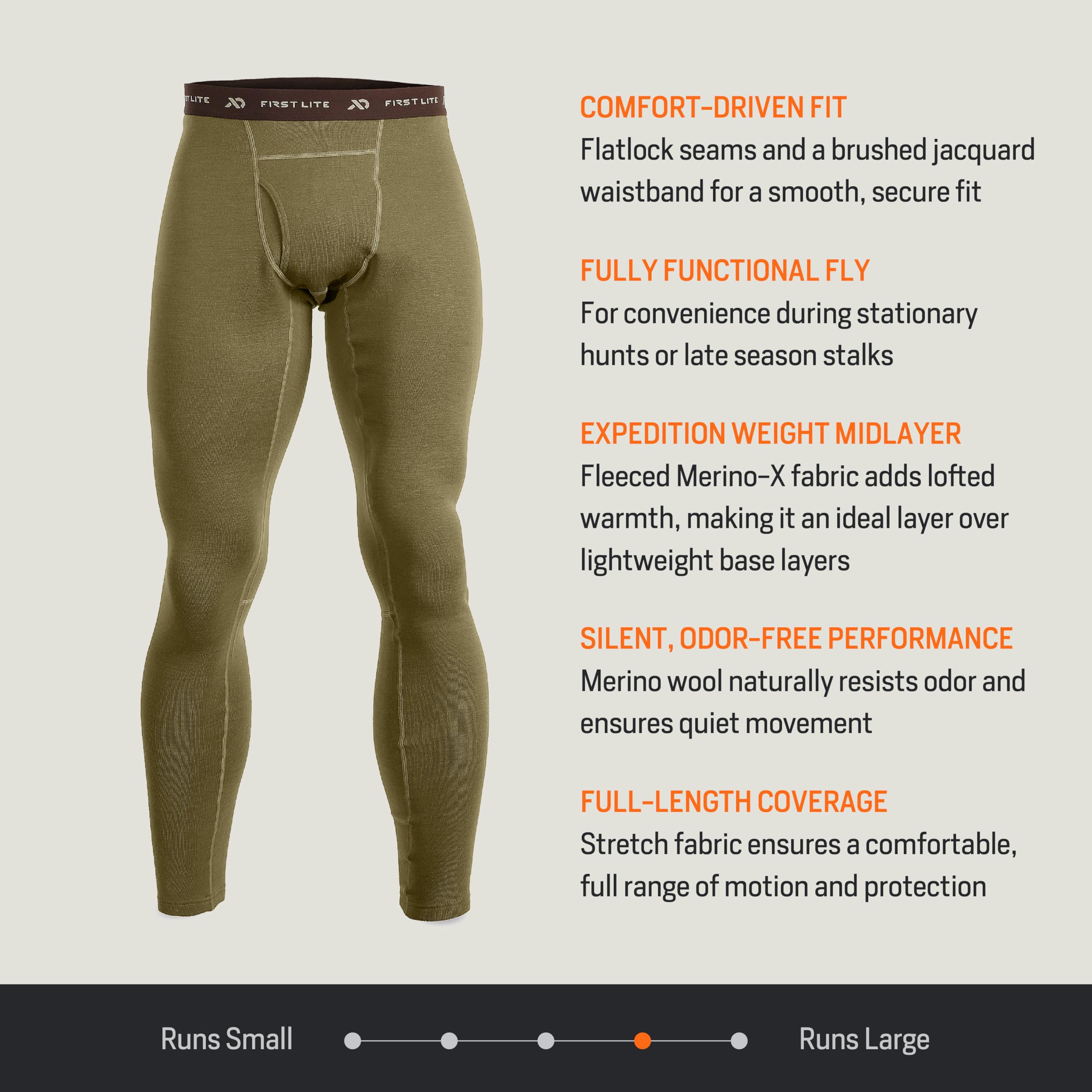 Stay warm and comfortable during your cold-weather pursuits with the First Lite Men's Furnace Long John. Designed for the modern outdoorsman, these long johns deliver the perfect balance of insulation and breathability, making them an essential base layer for winter adventures. The conifer green color not only adds a touch of outdoor-inspired style, but also blends seamlessly with your gear. Crafted for a relaxed, comfortable fit, these long johns ensure you have the freedom of movement you need, whether you're hiking, hunting, or simply braving the winter chill. The soft, breathable fabric feels gentle against your skin, keeping you cozy and dry during long days in the elements. Elevate your cold-weather layering with a base layer built for performance and comfort.