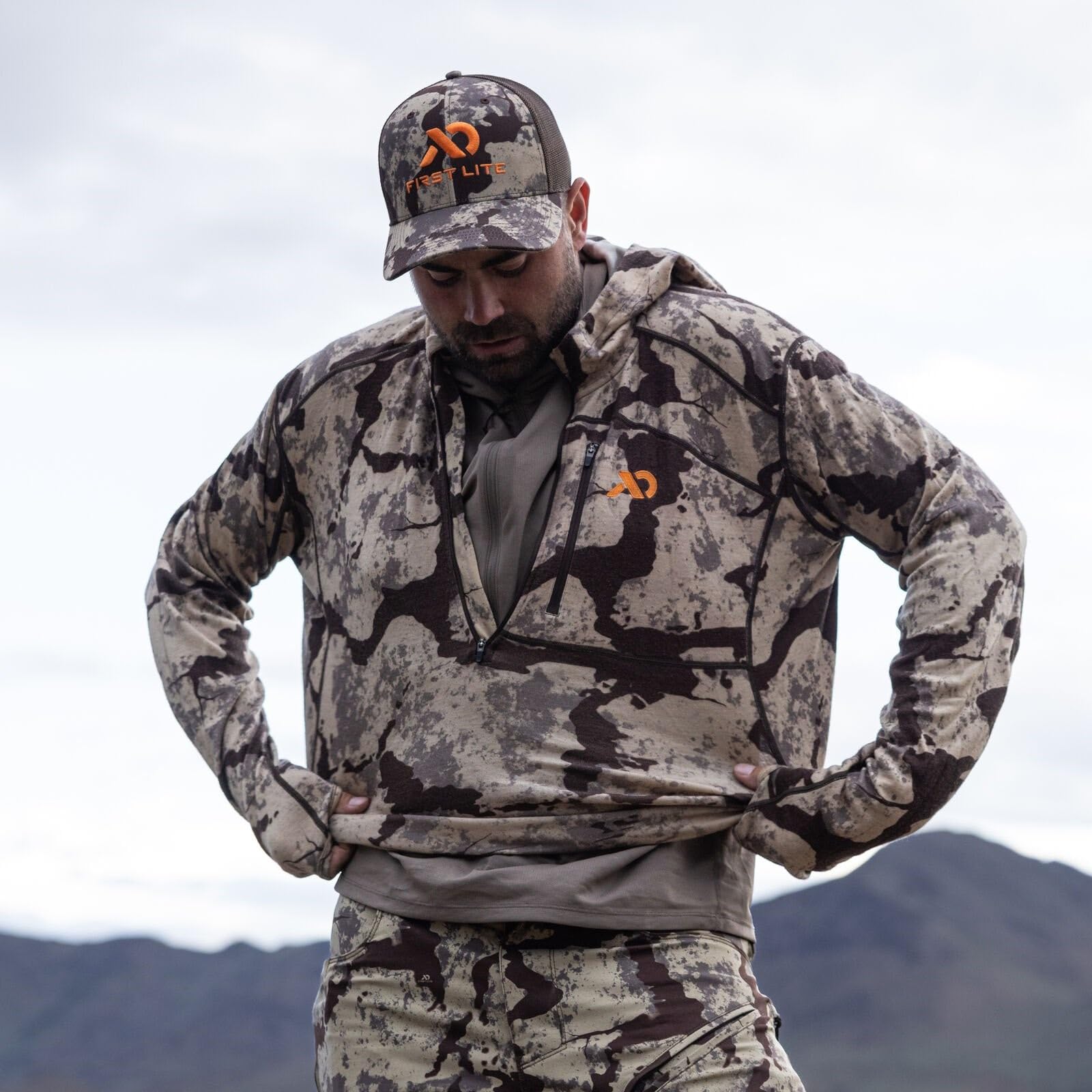 Engineered for those who demand performance and versatility, the First Lite Men's Kiln Hoody is the ultimate companion for outdoor adventures and everyday comfort. Its thoughtfully designed construction ensures you stay comfortable and protected, whether you're hiking rugged trails, setting up camp, or simply enjoying a brisk morning in town. The Kiln Hoody's breathable, durable fabric keeps you comfortable in a range of conditions, while the integrated hood offers extra coverage when the weather turns. The Cerca colorway adds a modern, stylish edge, making this hoody a go-to for both outdoor pursuits and casual wear. Its lightweight profile is perfect for layering, making it a reliable choice for cooler weather and changing conditions.