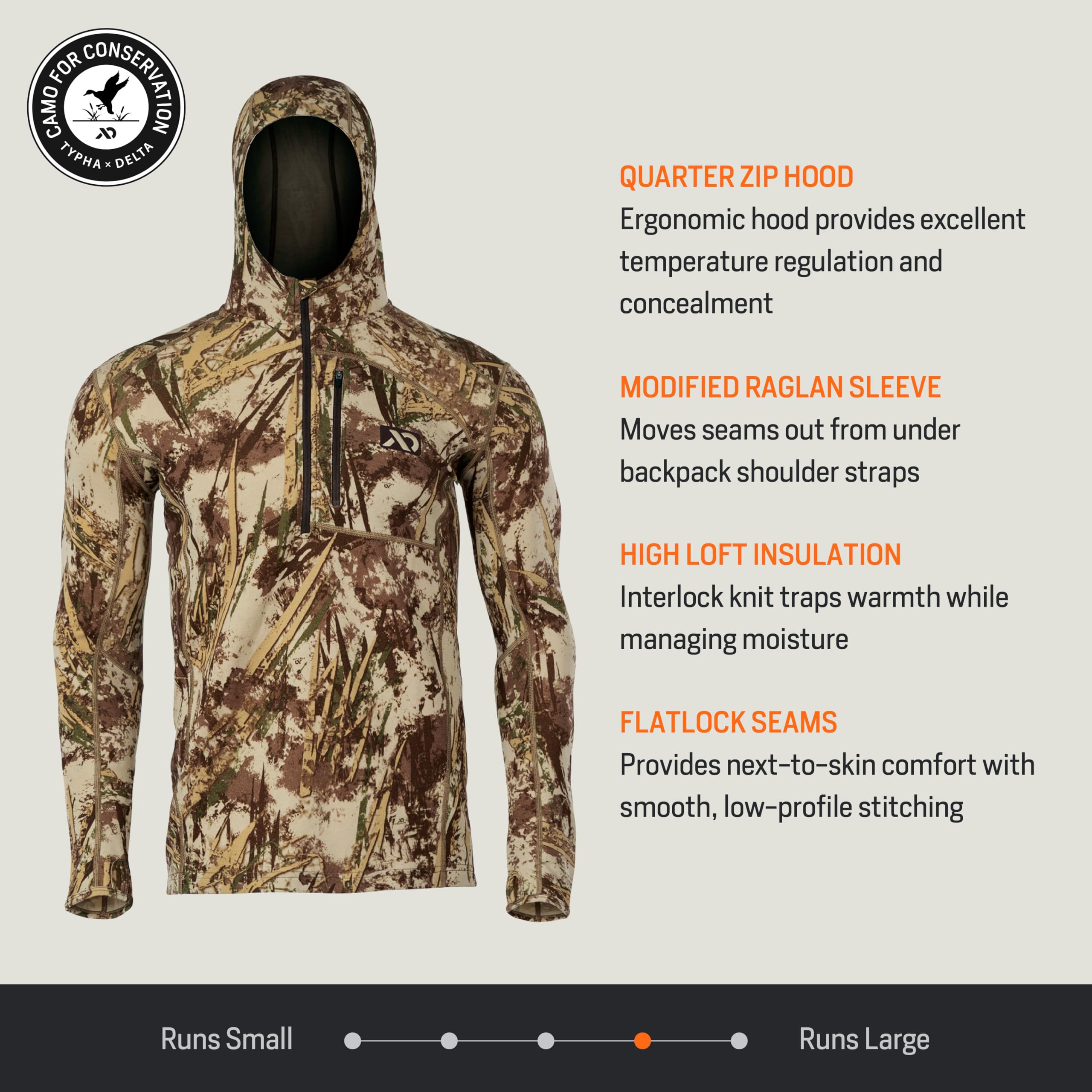 Engineered for those who demand performance and comfort in the outdoors, the First Lite Men's Kiln Hoody in Typha is the ultimate companion for your next adventure. Whether you're glassing for game at dawn, trekking through the backcountry, or enjoying a crisp evening by the campfire, this hoody is designed to keep you comfortable and protected. The Kiln Hoody is crafted from a robust, breathable fabric that wicks moisture and regulates temperature, ensuring you stay dry and at ease through changing conditions. The thoughtfully designed hood provides a snug, insulating fit, making it a reliable choice for layering in unpredictable weather. With a relaxed fit, it offers freedom of movement and comfort for all-day wear, making it a versatile staple for hunting, hiking, or everyday use.